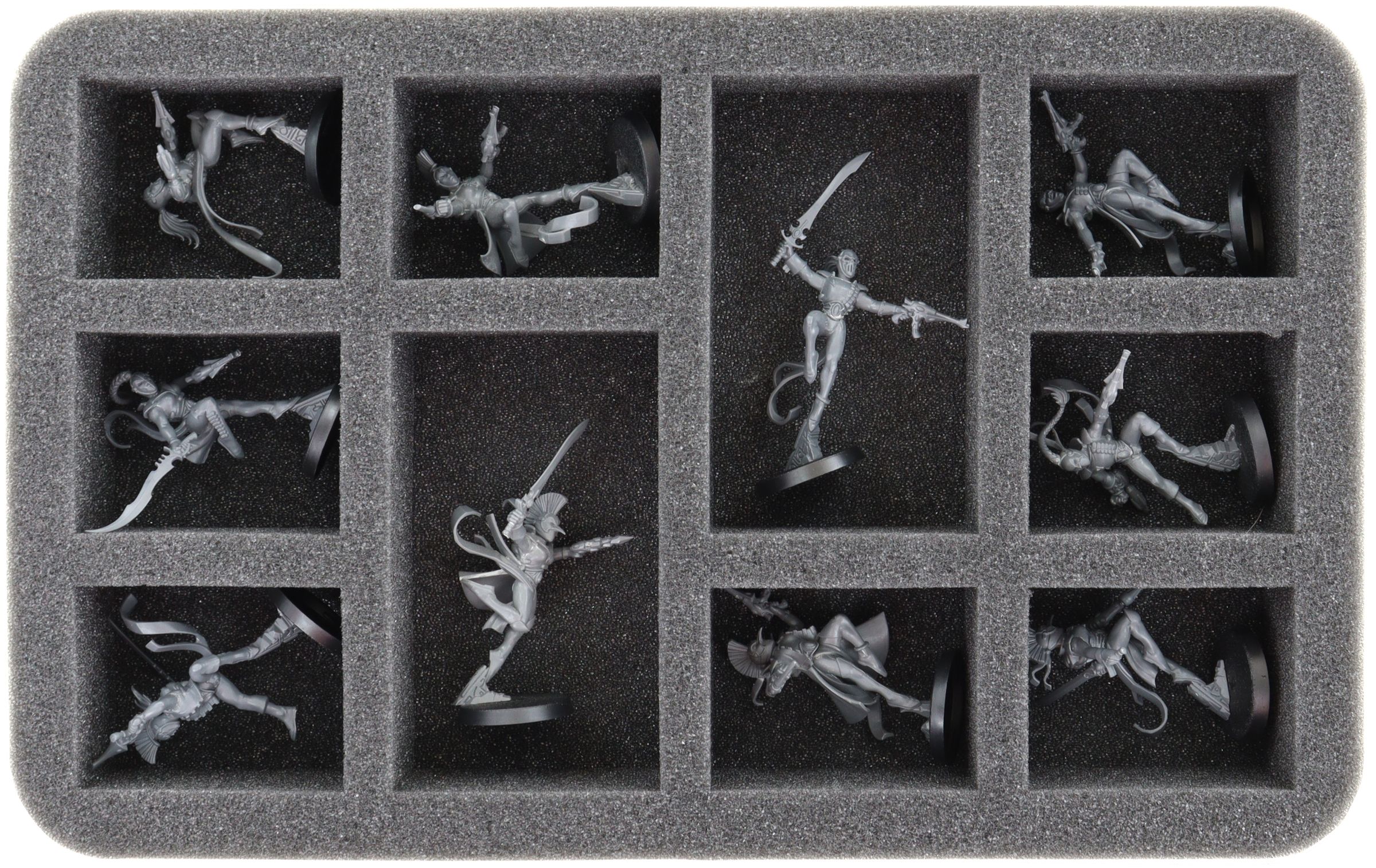 - 1 Half-Size bandeja de espuma con 10 compartimentos para miniaturas voluminosos como Shadowseer, Death Jester, Solitaire, Harlequin Troupe y modelos con dimensiones similares (HS045A029)