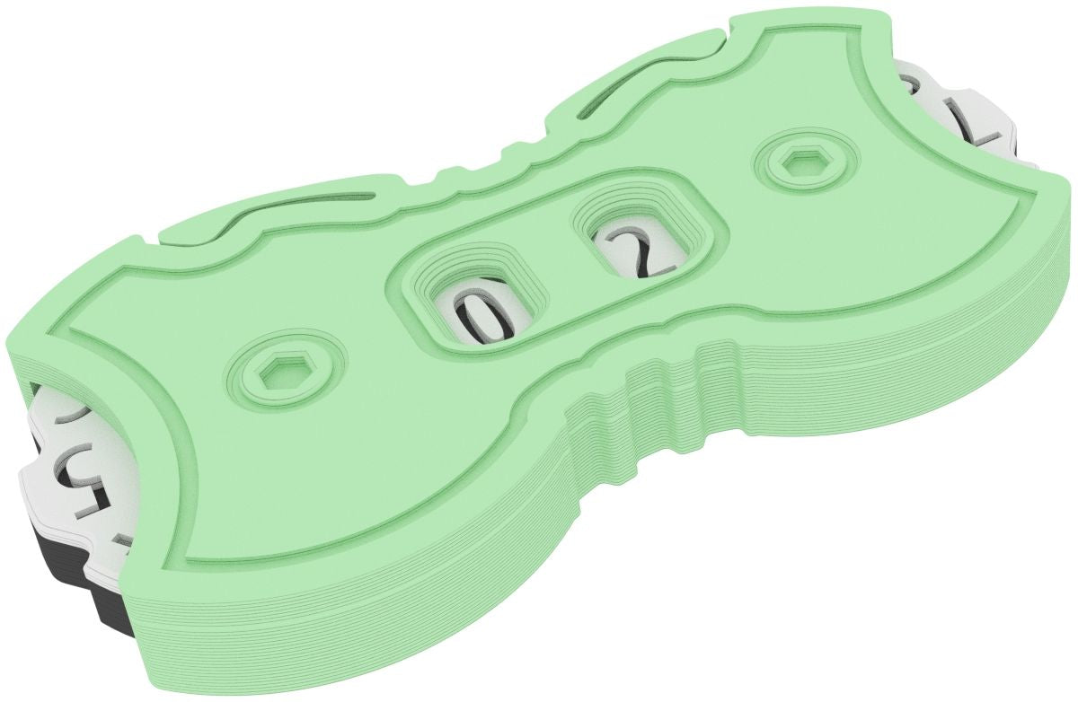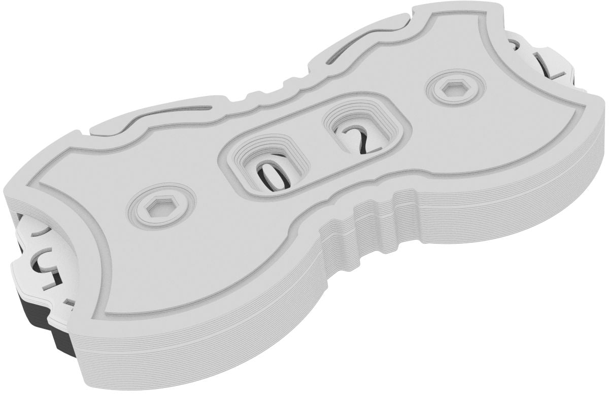 Dimensiones del contador de puntos de vida 64 mm x 34 mm x 8 mm