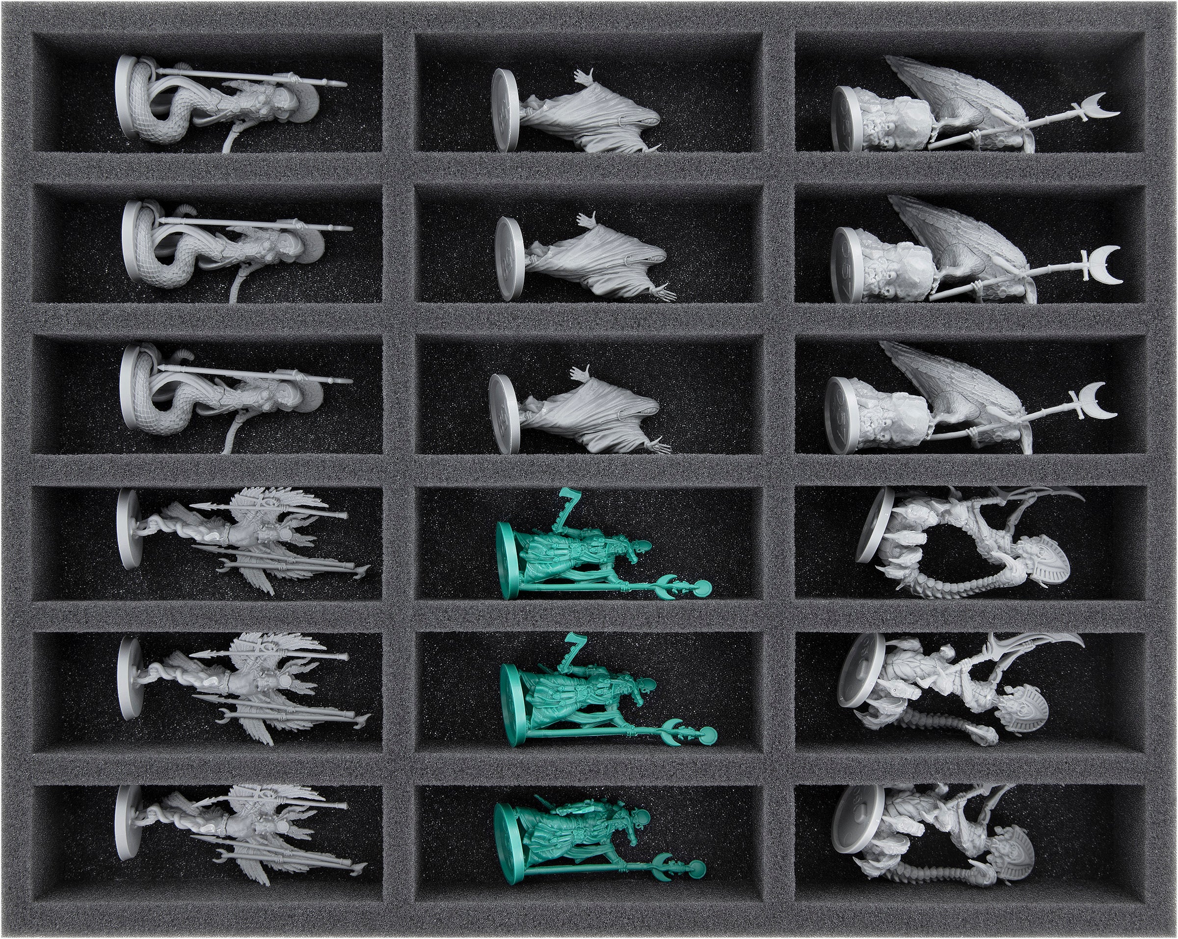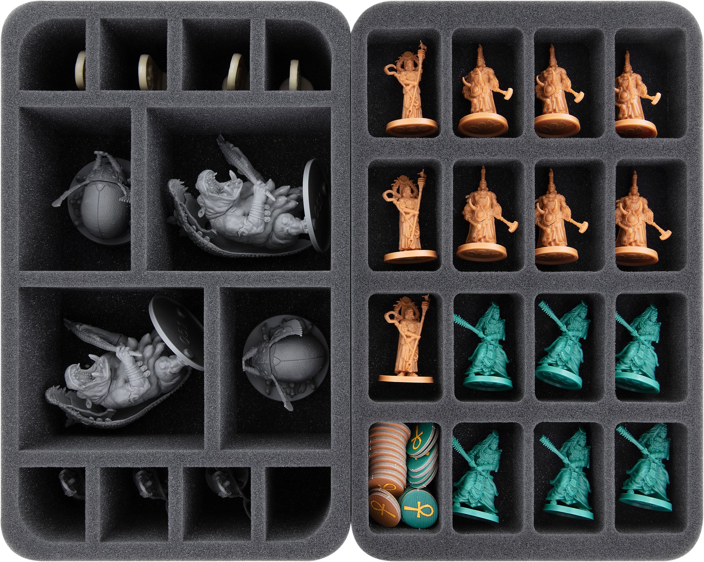 - 1 bandeja de espuma Half-Size con 16 compartimentos para miniaturas como Sacerdotes de Ptah, Guerreros de Ptah, Guerreros de Sobek + material de juego (HS035BF05BO)
