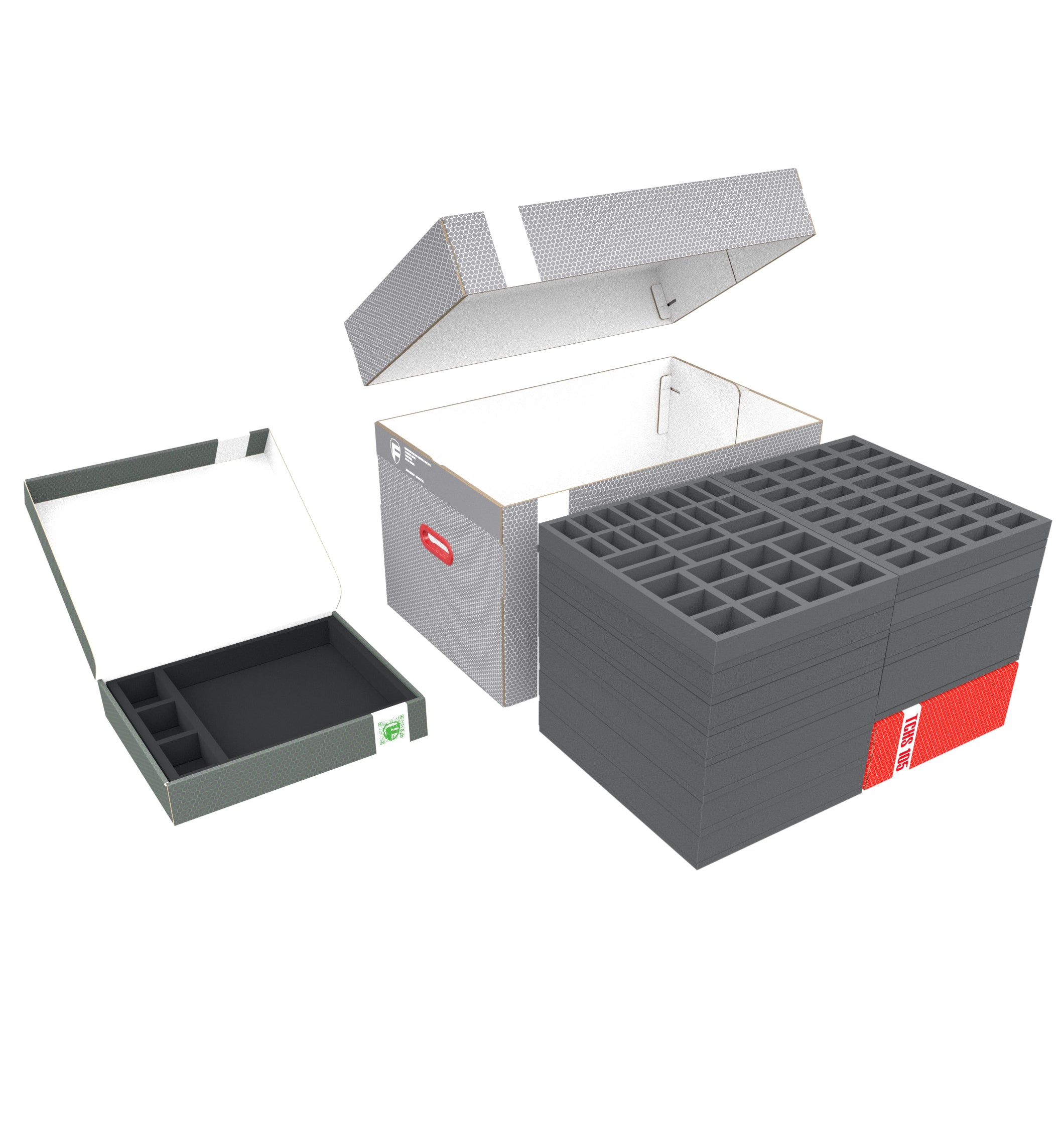- 2 Full-Size bandeja de espuma cada uno con 4 compartimentos para miniaturas y tableros de juego (FS050I031BO)