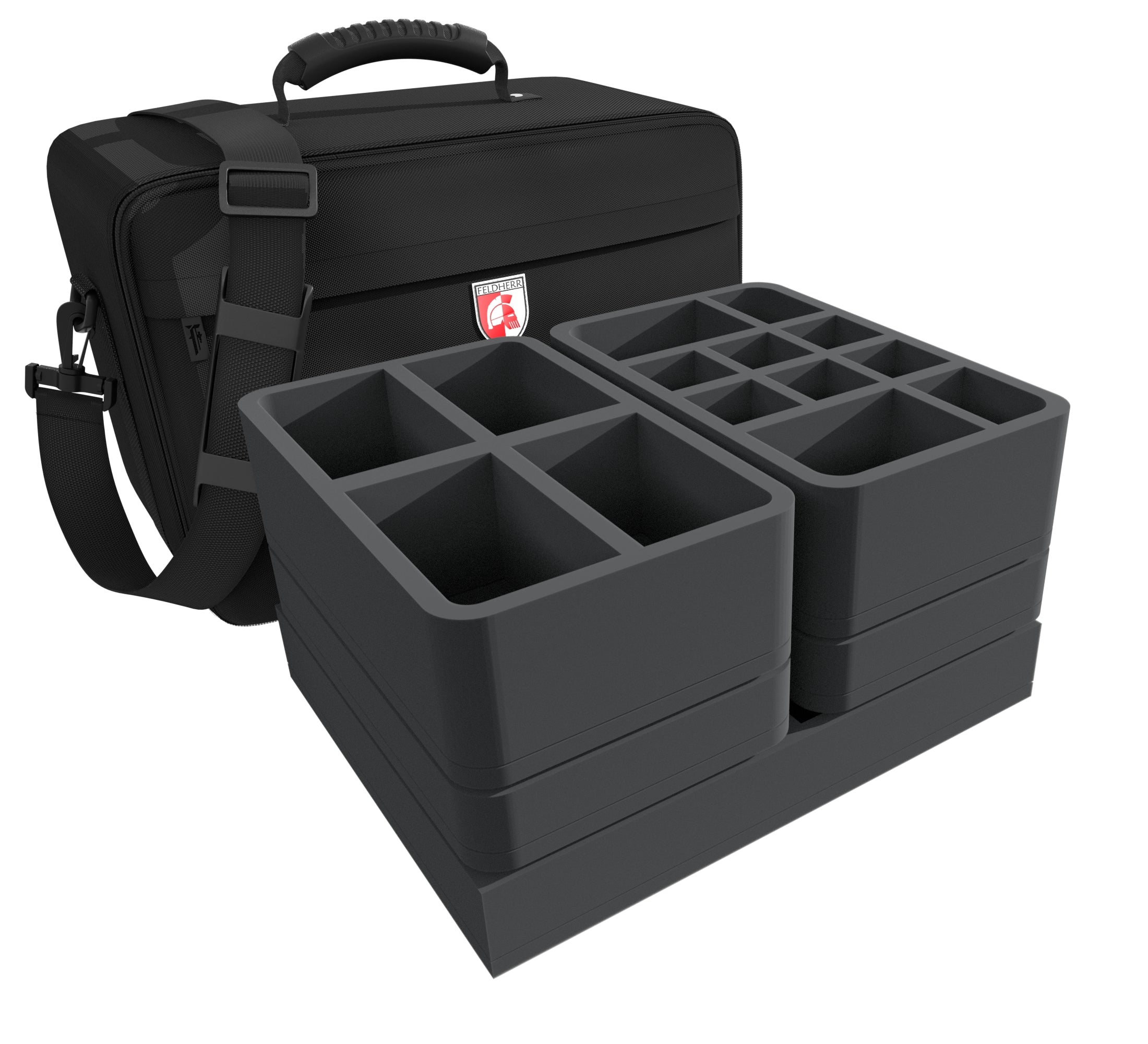 1 Full-Size y 6 Half-Size bandeja de espuma proporcionan una protección óptima para tus modelos. Cada modelo tiene su propio compartimento. El corte a medida garantiza que, incluso durante el transporte en un Mundo de Cronos caído, ningún modelo resbale, y las miniaturas permanezcan firmemente en su sitio. Las espuma blandas protegen de daños detalles delicados como armas, pelo y extremidades. De este modo, los colores de tus modelos permanecen intactos, a salvo de la abrasión y los desconchones de pintura.