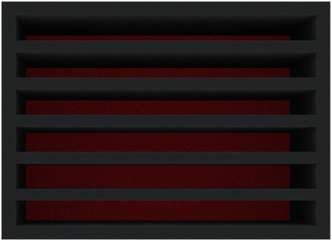 • 6 compartimentos: 330 mm de largo x 28 mm de ancho x 125 mm de profundidad