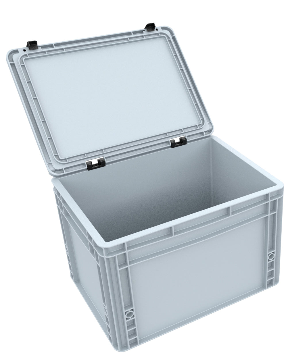 El Eurocontenedor con tapa abatible de AUER Packaging puede cerrarse en un abrir y cerrar de ojos gracias a su sistema de bisagras de fácil manejo. De este modo, su mercancía queda protegida de forma óptima contra daños de transporte y suciedad.