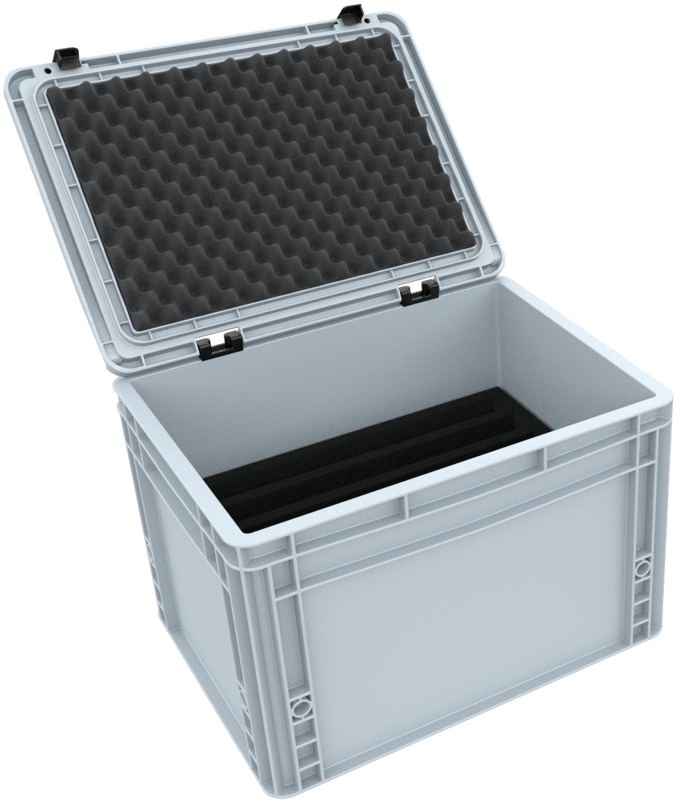El topper espuma convoluta DFNP020S está cortado para encajar en la tapa abatible del Eurocontenedor Auer serie ED 43/xx. El espuma convoluta se puede pegar fácilmente en la gran superficie libre.