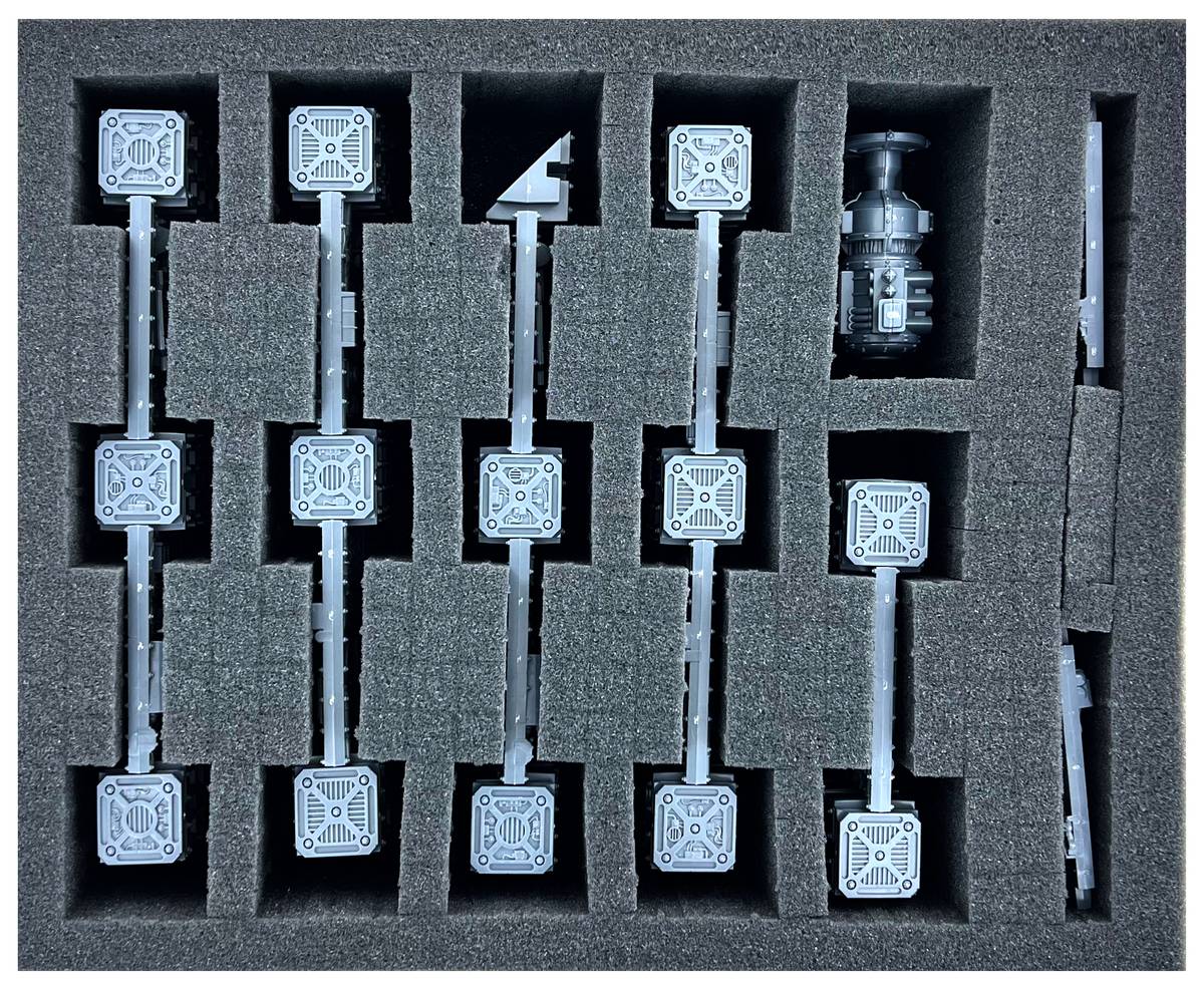 Hemos incluido suficientes espuma en cubos espuma en el set para las piezas de terreno modulares. No importa cómo quieras diseñar tu zona de muerte, ¡las espuma prefabricadas son ideales para tu configuración! Las espuma en cubos espuma te permiten diseñar y dar forma a las espuma compartimentos. Recorta la forma deseada con un cúter, unas tijeras o tus dedos.