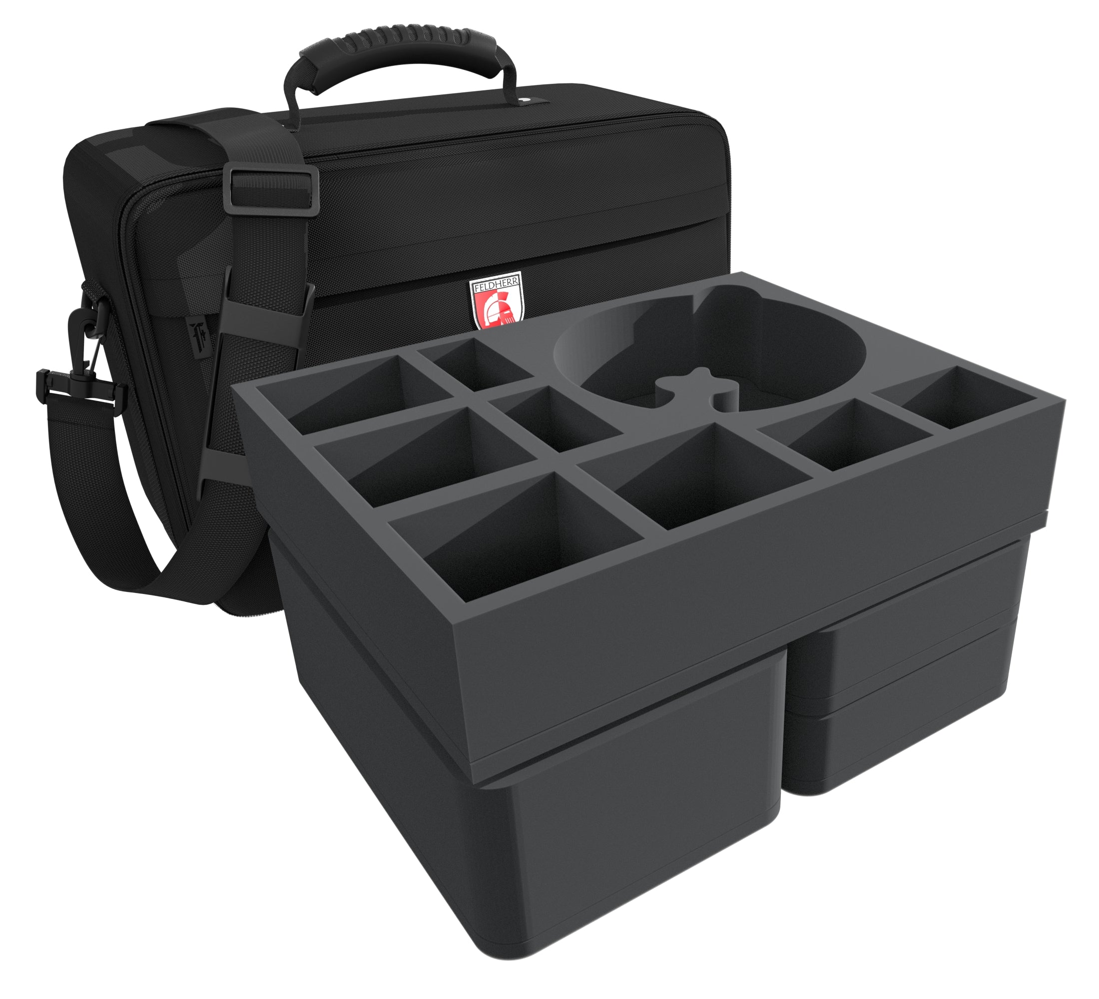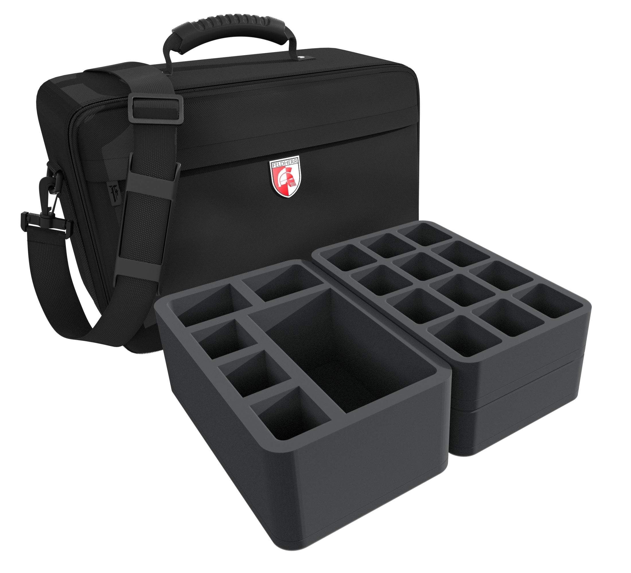 Para que no le pase nada a tu ejército de camino a la siguiente misión, aquí tienes la bolsa MAXI a juego que incluye bandejas de espuma Feldherr personalizadas para proteger tus miniaturas.
