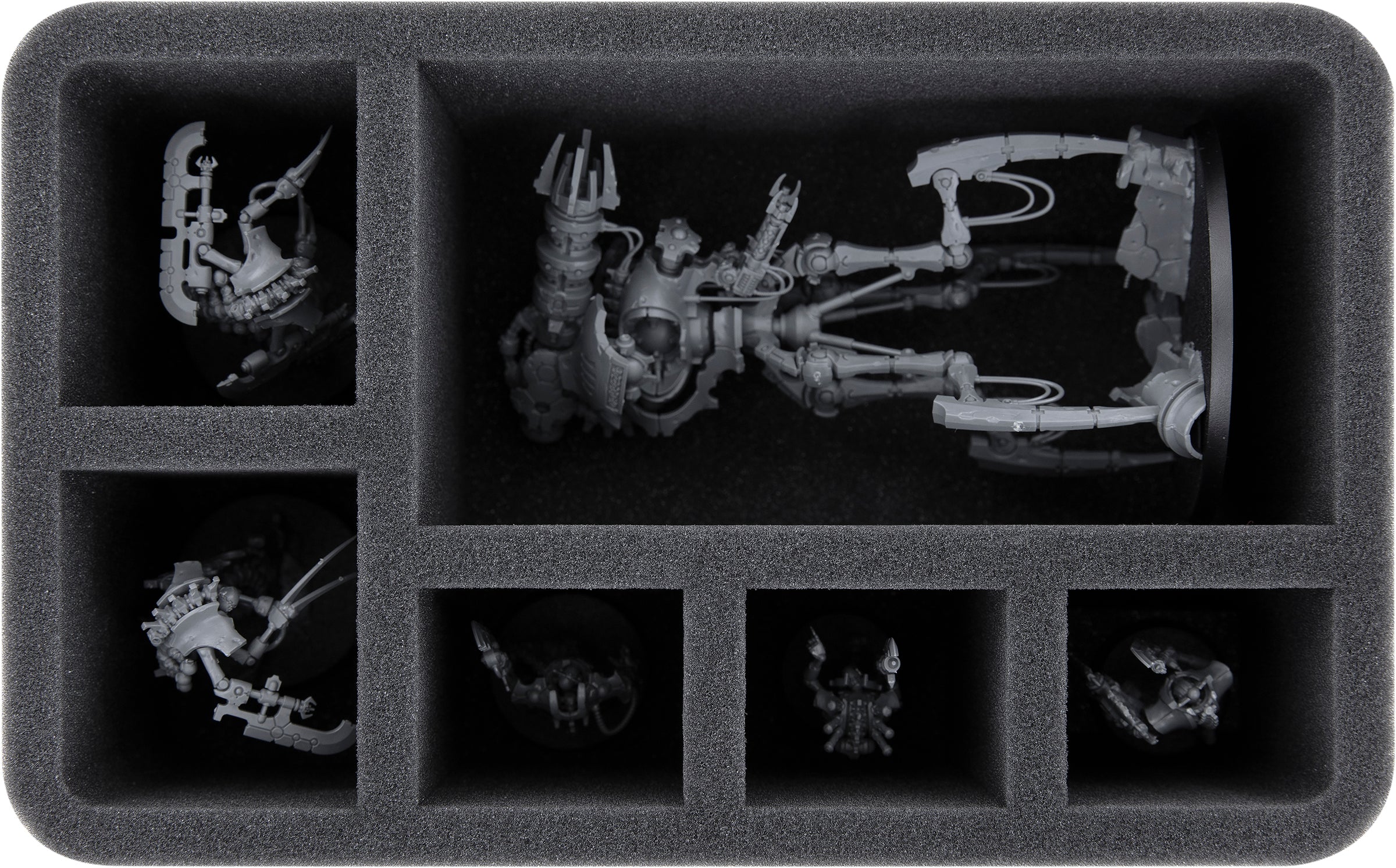 • 1 bandeja de espuma Half-Size con 6 compartimentos para, por ejemplo, Canoptech Doomstalker y miniaturas sobre bases de 32 mm a 50 mm (HSMFAK100BO)