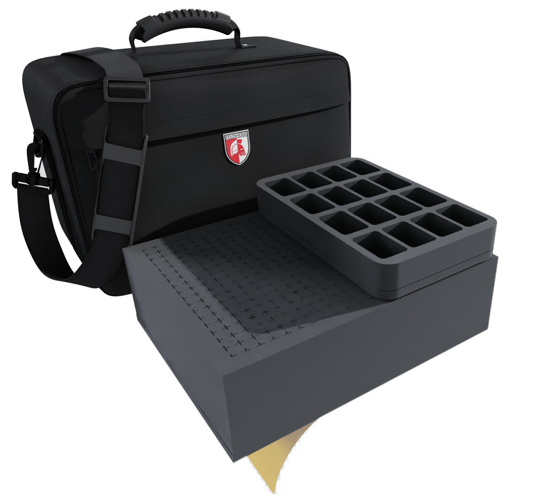 Con nuestra bolsa MAXI PLUS, podrá guardar sus figuras de forma segura y compacta. Las bandejas de espuma Feldherr proporcionan una protección fiable, permitiéndote llevarlas sin problemas a la próxima noche de juego.