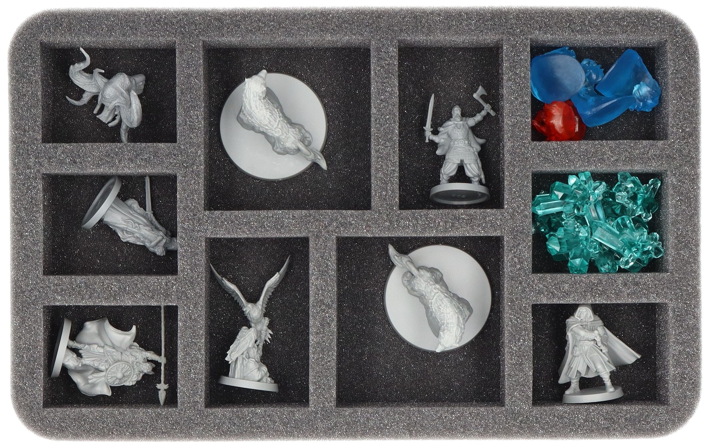 - 1 Half-Size bandeja de espuma con 10 compartimentos para Geri, Freki, Sigi, Thrud, Hugin & Munin, Aslaug, Björn, cabeza alternativa de Ymir + ficha de plástico (HSMEQL050BO)