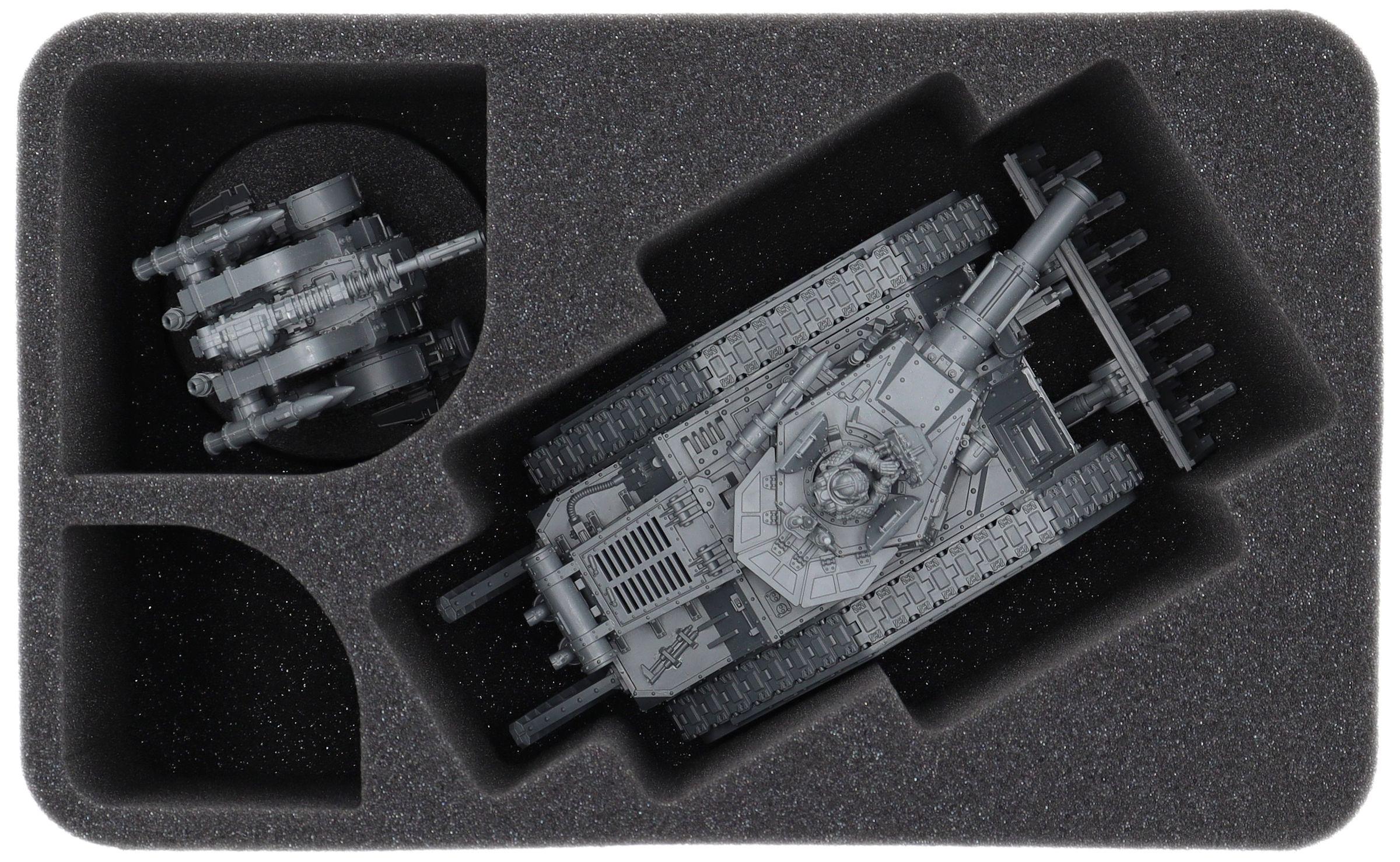 • 1 bandeja de espuma de tamaño medio con 3 compartimentos para los centinelas pesados Aethon y los temidos tanques de asalto Leman Russ (HSMFMD120BO)