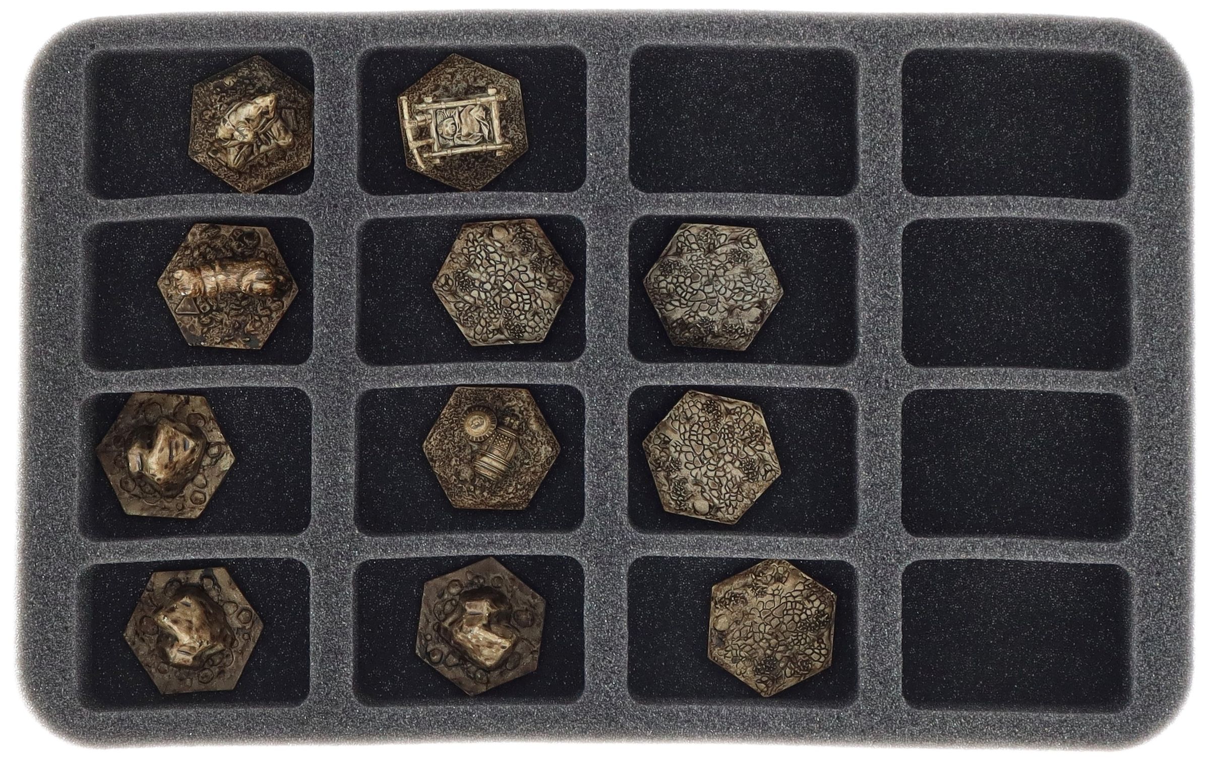 • 1 Half-Size bandeja de espuma con 16 compartimentos para miniaturas y material de juego (HS045BF05BO)