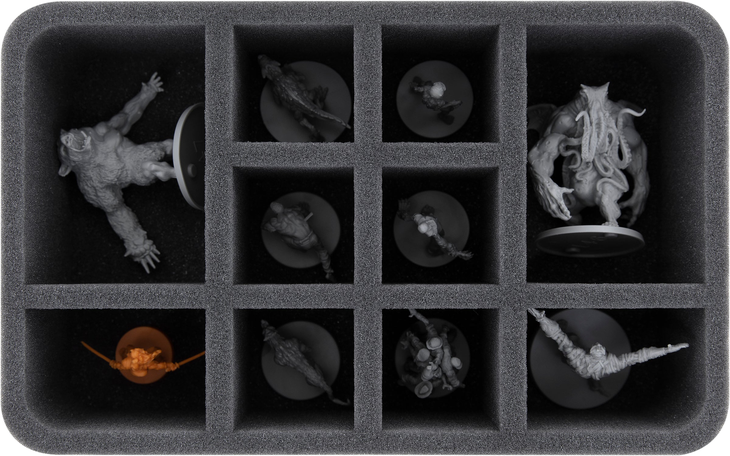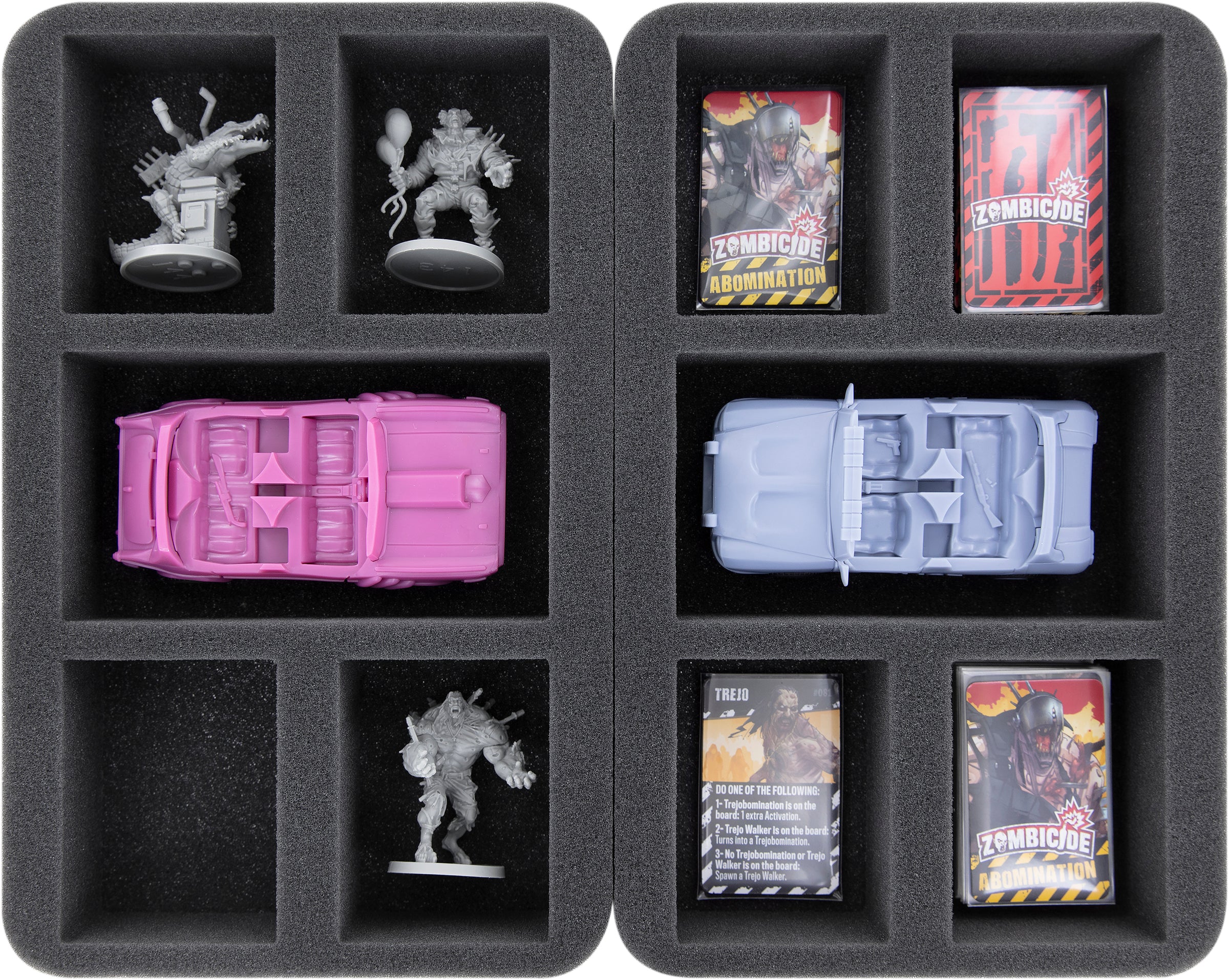 Ya sea Danny Trejo o una fea Abominación, cada una de las 236 miniaturas tiene un compartimento adecuado. Gracias al corte a medida, las figuras no se deslizan y permanecen en su sitio incluso cuando se transportan a través de una horda de No Muertos.
