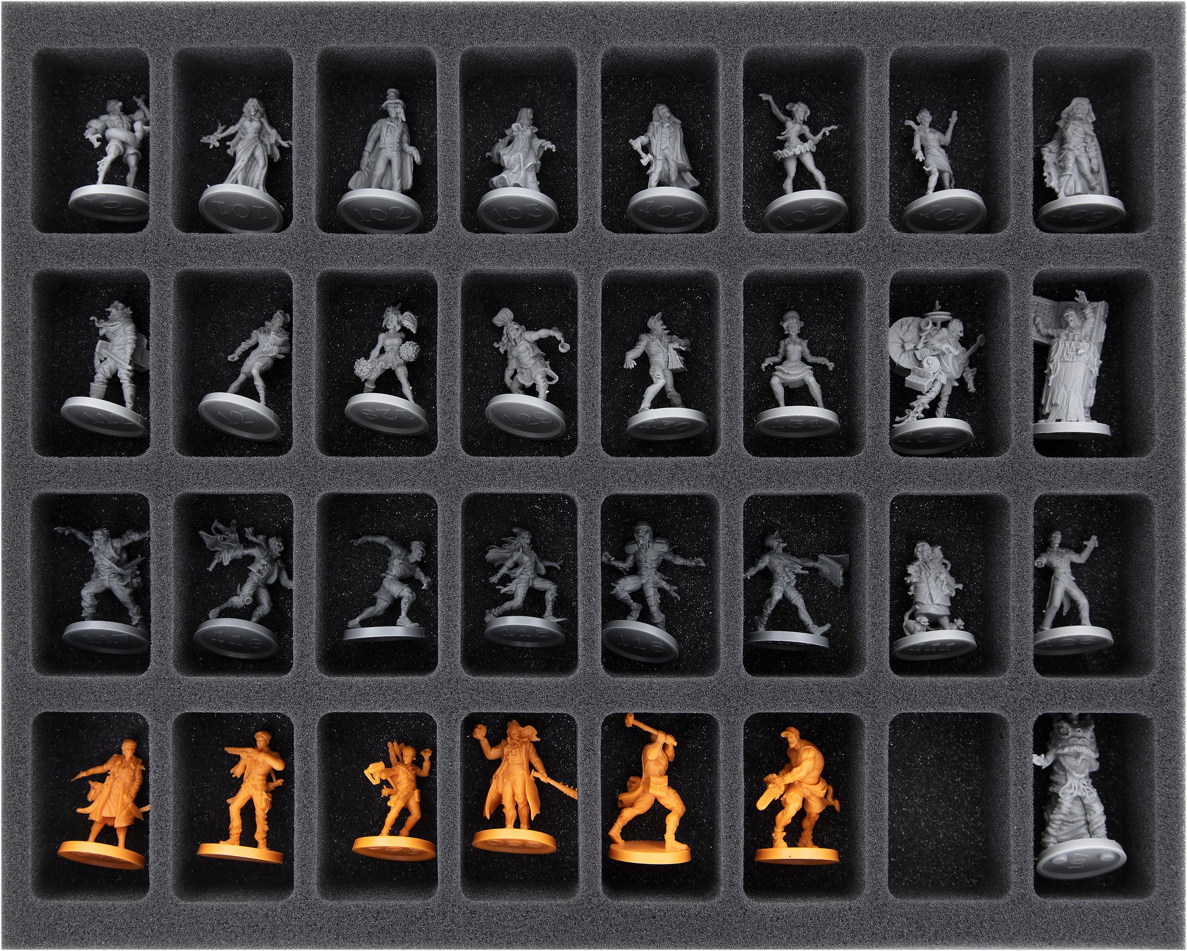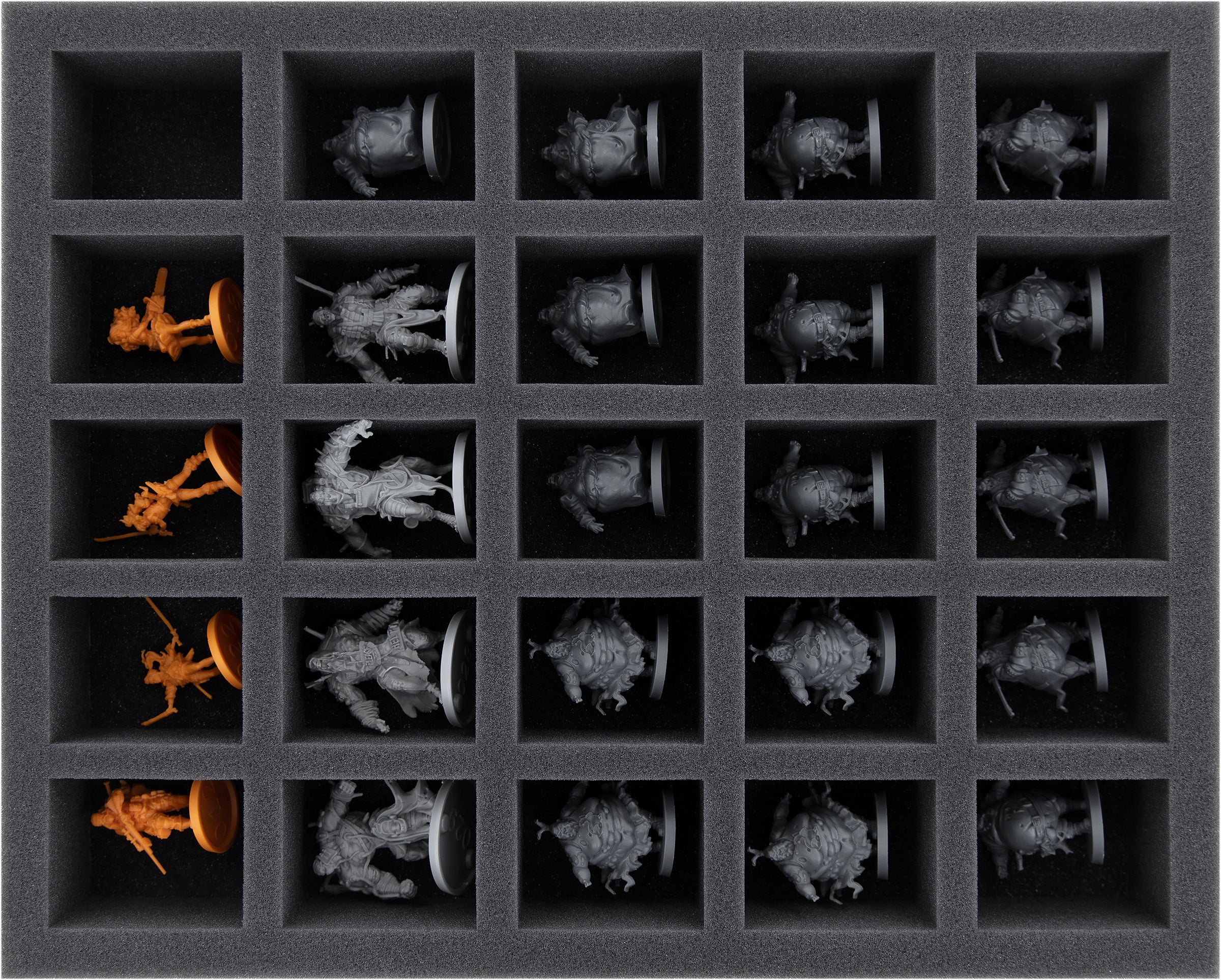 - 1 bandeja de espuma Full-Size con 25 compartimentos para miniaturas que sobresalen (FSLQ050BO)