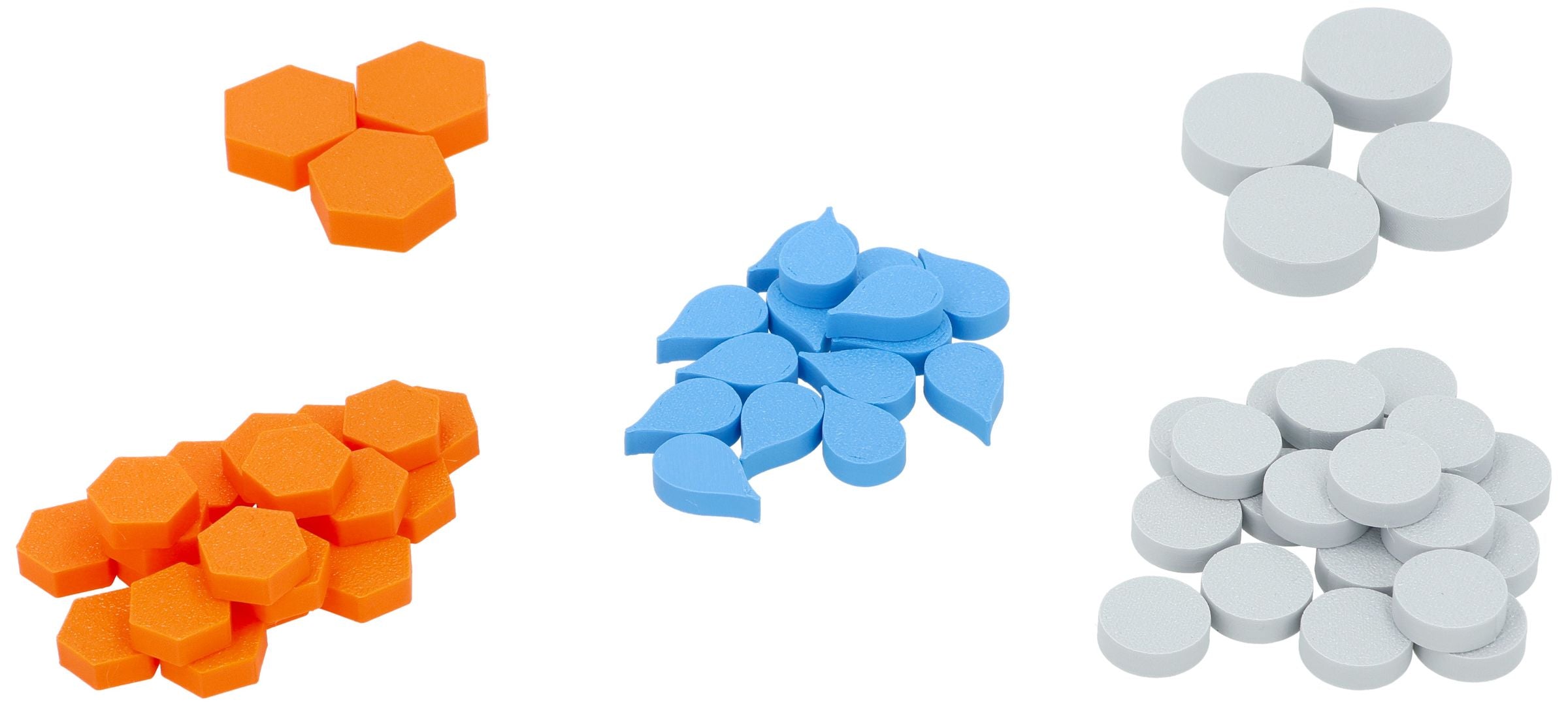 - Well-designed 3D tokens – easy to pick up, sort and distinguish on the table