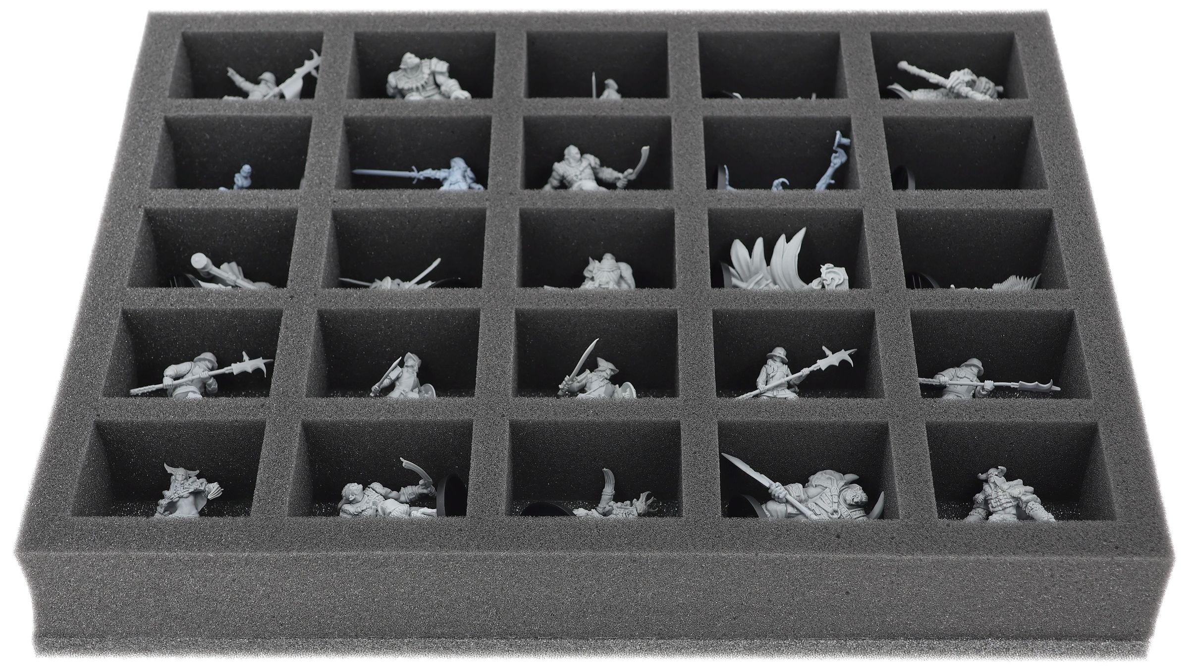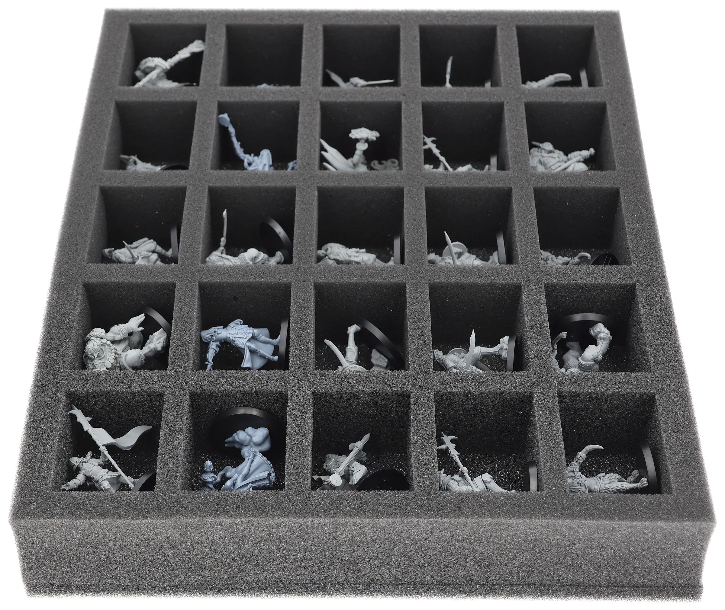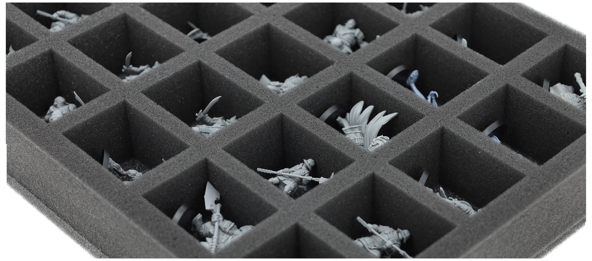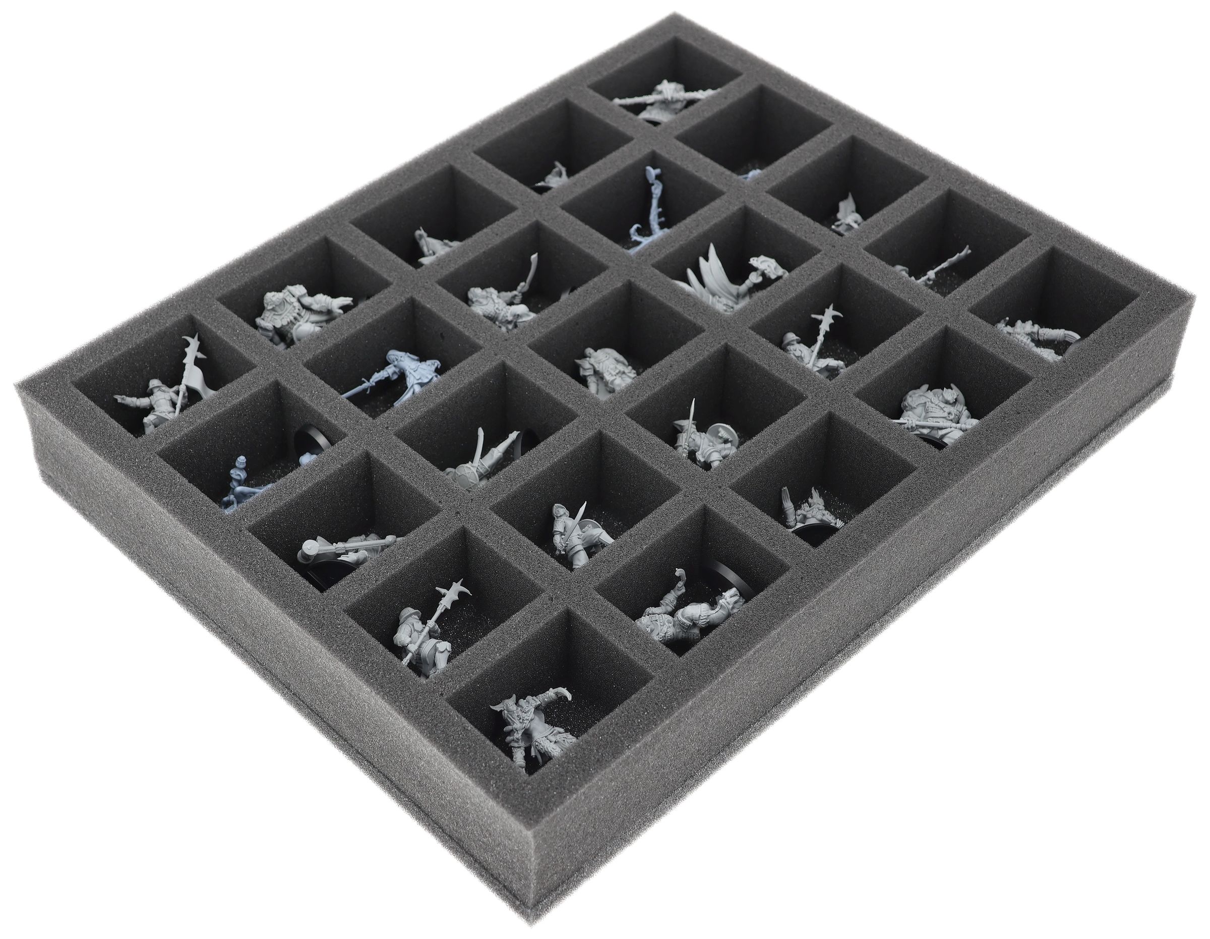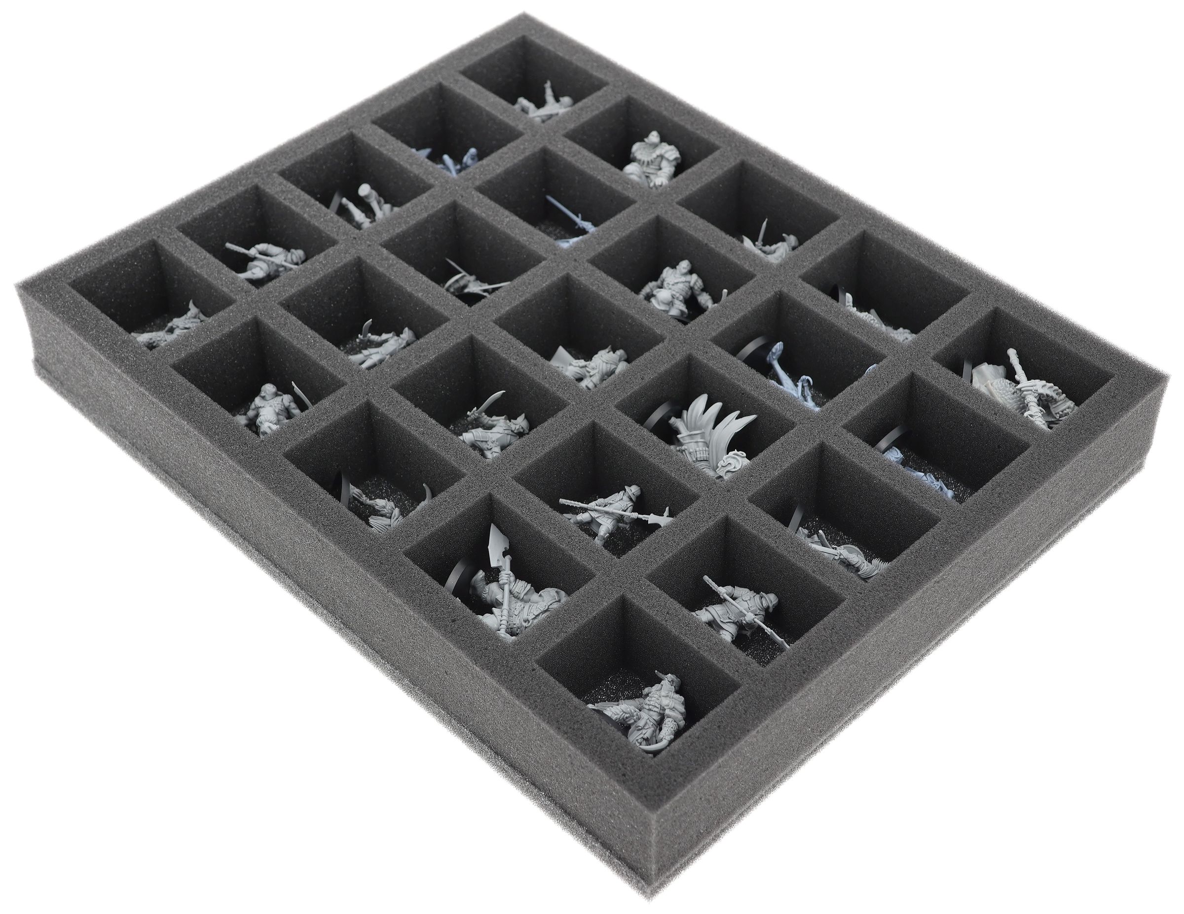En esta bandeja de espuma Feldherr tienes espacio para hasta 25 miniaturas de tu ejército. El inserto es especialmente adecuado para guardar la Hegemonía de Embersig, Feudom y modelos de tamaño similar.