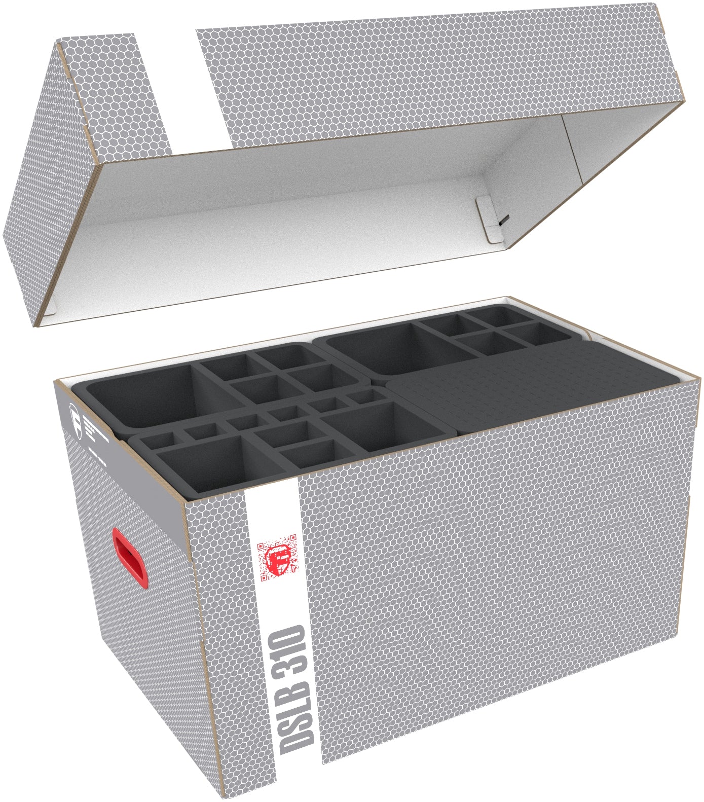 Todos estos bandeja de espuma se apilan en el interior del Storage Box DSLB310 de alta calidad. Está fabricado en cartón ondulado revestido, por lo que no sólo es agradablemente ligero, sino también especialmente resistente al desgarro y estable. De este modo, sus modelos pueden guardarse de forma segura y protegidos contra el polvo.