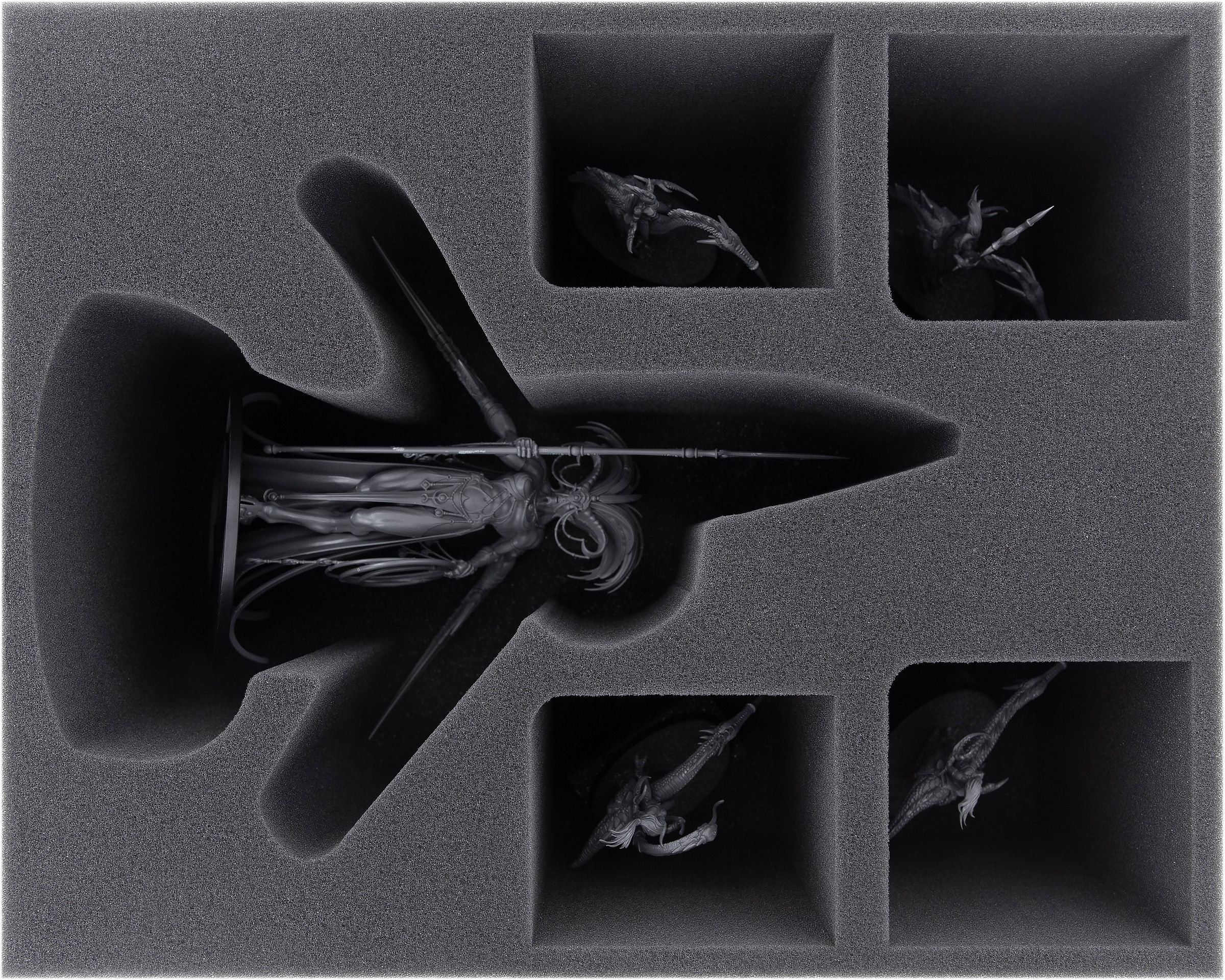 El espuma cubierta incluido completa el conjunto. Garantiza que sus miniaturas estén óptimamente protegidos por espuma desde todos los lados.