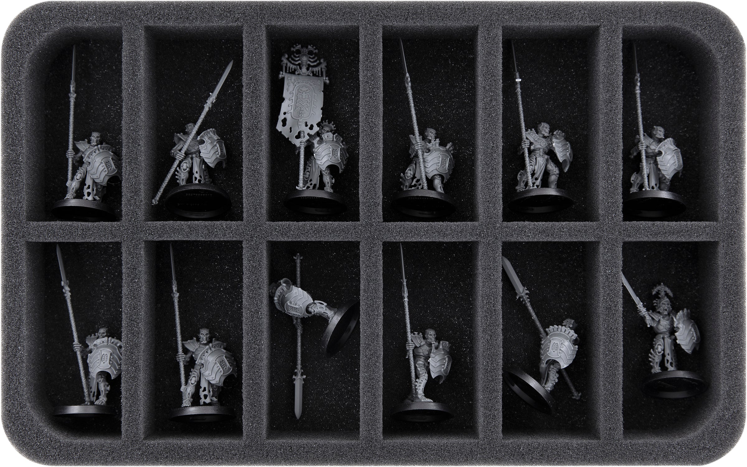 - 2 Half-Size bandeja de espuma, cada una con 12 compartimentos para, por ejemplo, Daemonettes de Slaanesh (sin estandartes, música y miniaturas extra ancho), Heraldo de Slaanesh (HSMECP040BO)
