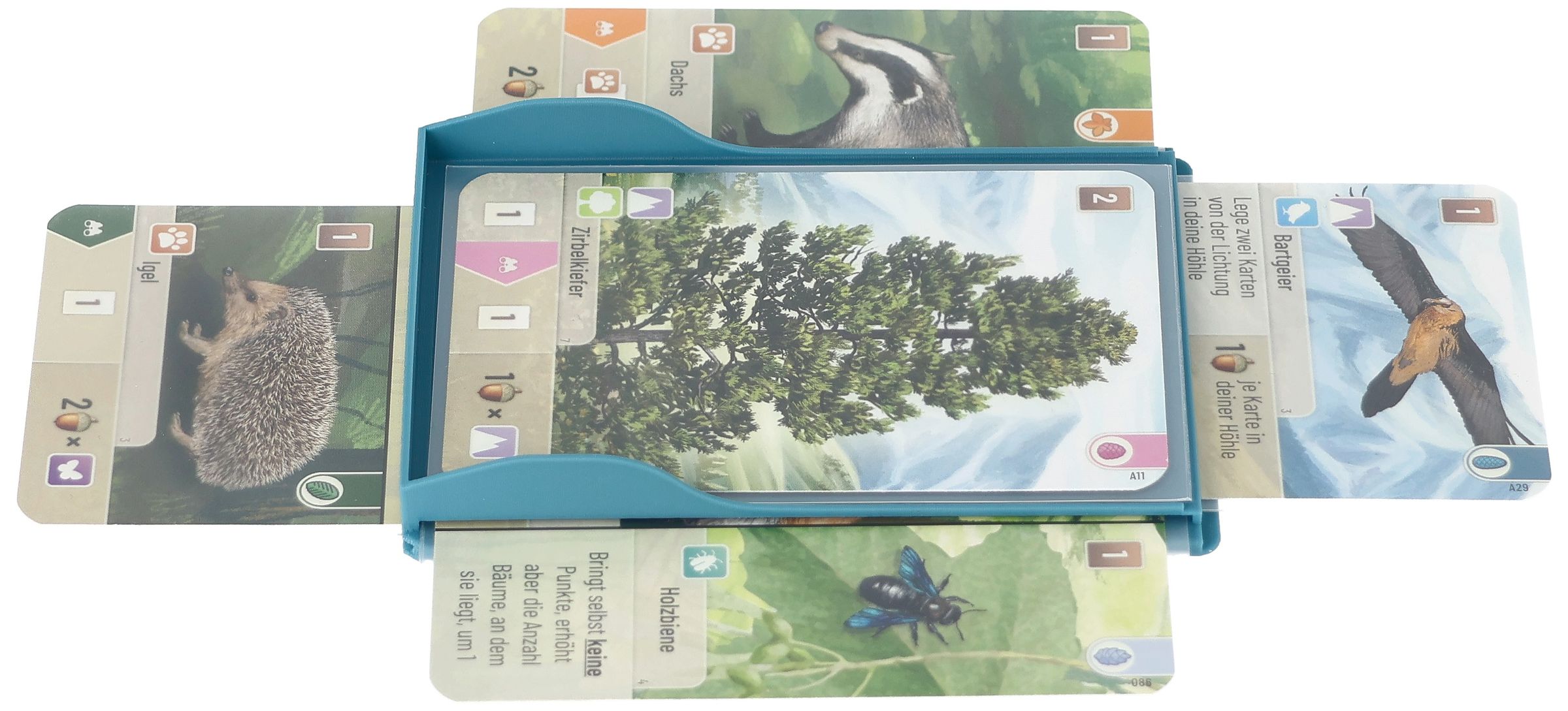 In Forest Shuffle, your own forest of magnificent tree cards grows - but placing and moving the cards can quickly become confusing. With this Feldherr card holder, you stay in control and can place, lift and move your cards in an orderly fashion without them slipping. This allows you to play more relaxed and always have an overview of your display.