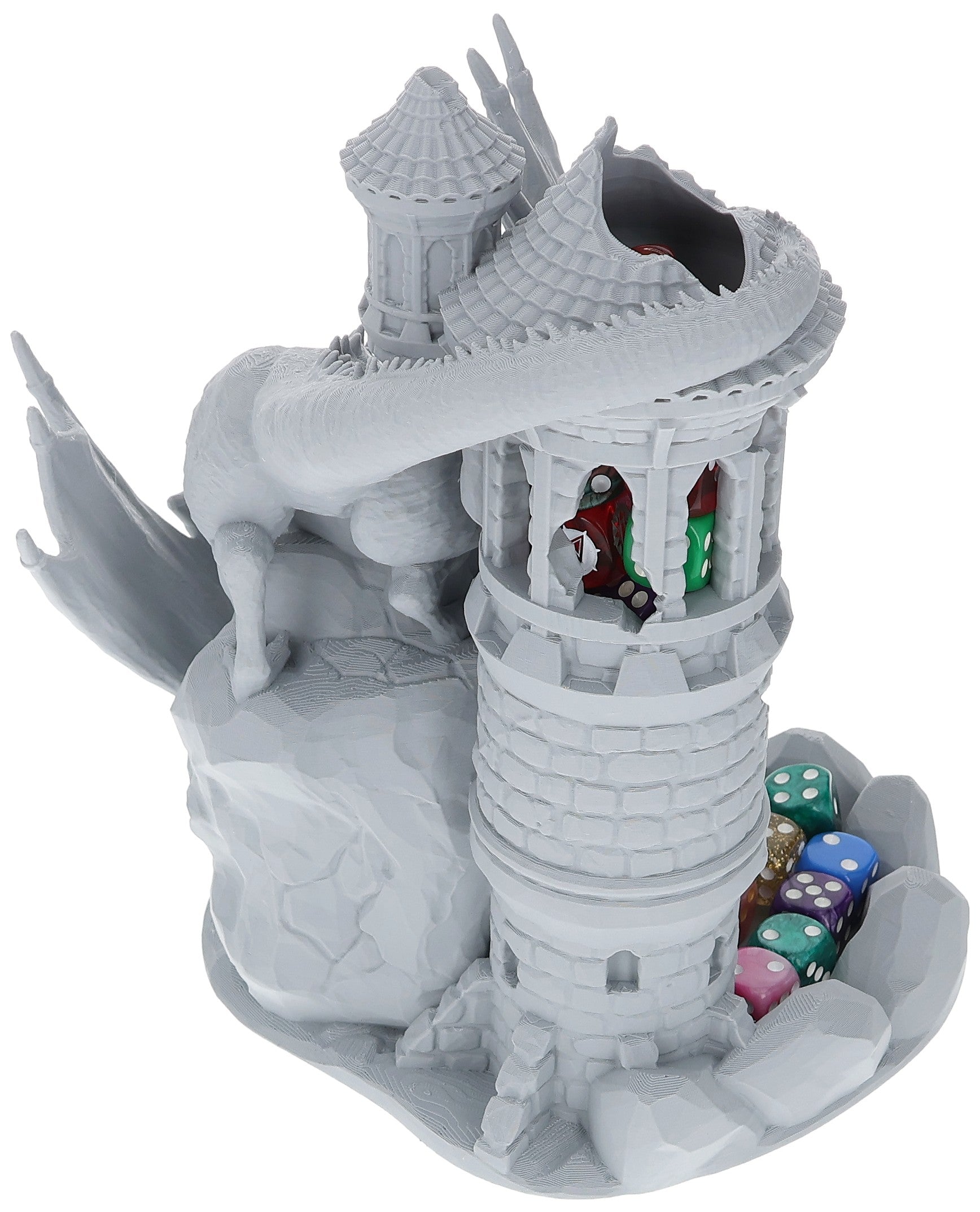 The ultimate accessory for enthusiasts of role-playing and tabletop games, The Watchtower Dice Tower, stands proudly at approximately 22 cm tall and is crafted from eco-friendly PLA right here in Germany. This towering addition to your gaming setup offers more than just an aesthetic appeal—its mythic roll capabilities ensure every dice roll feels epic and fair. Whether you’re immersed in the realms of Dungeons & Dragons, warhammer, or any fantasy setting, The Watchtower Dice Tower promises to elevate your gaming experience.