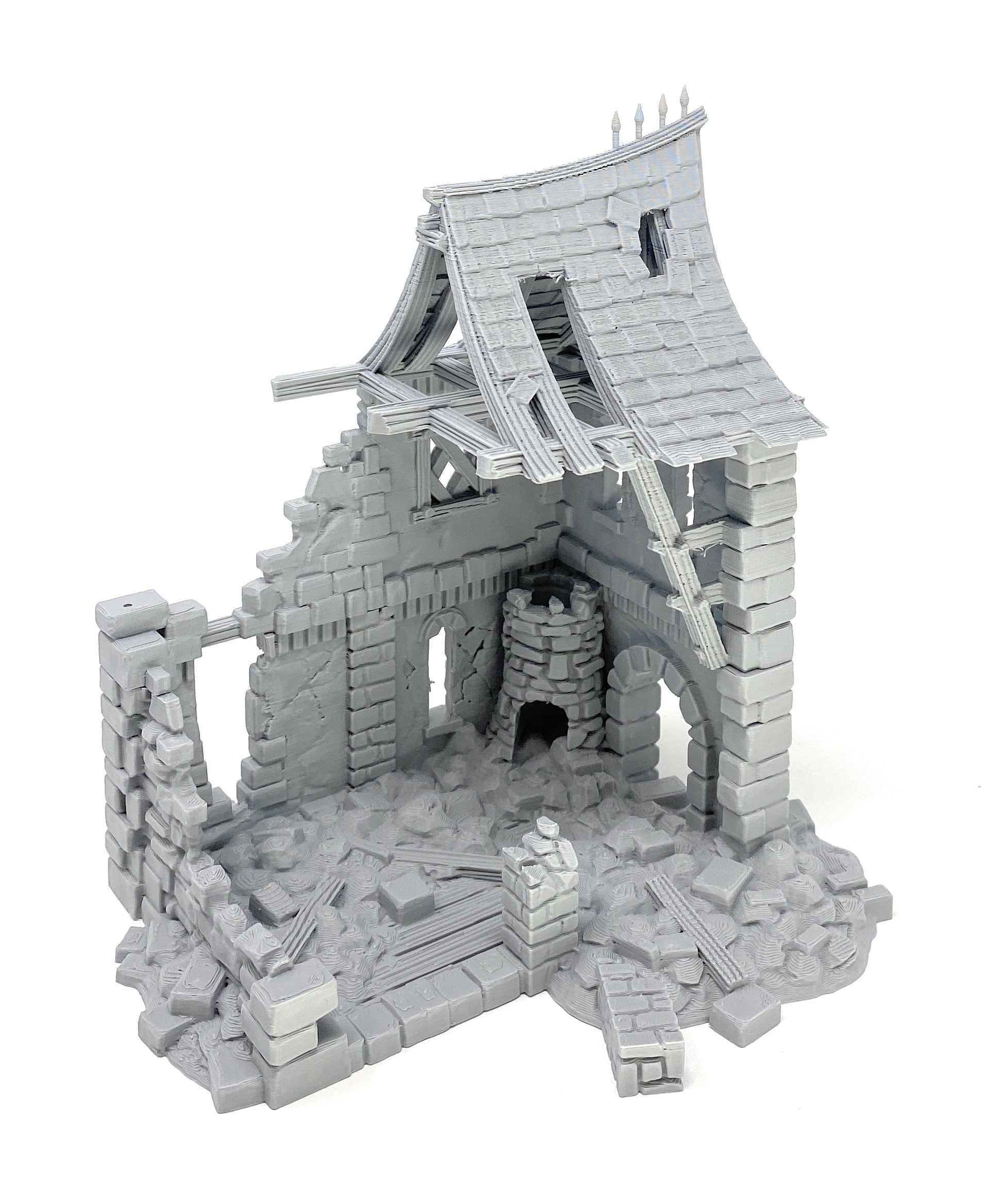 3D printed house ruins. Thoroughly detailed from five sides. These house ruins can also be used as a terrain part for your tabletop game or part of your medieval model village. In any case, this ruin is sure to set the mood!