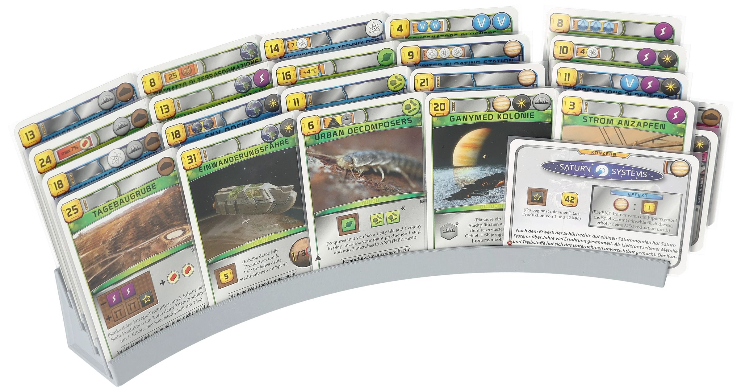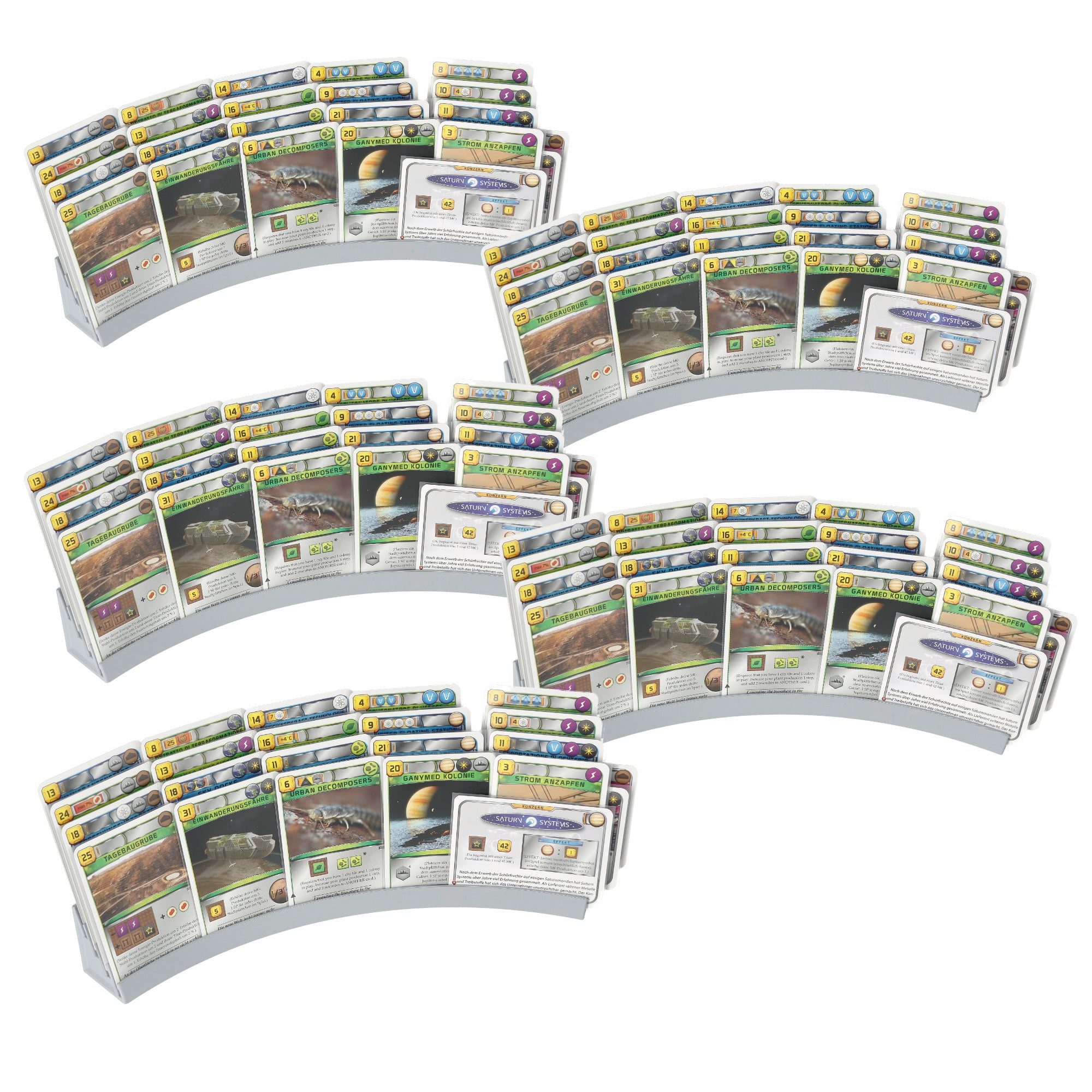 - Each holder provides space for up to 20 cards: four slots provide enough space to place your cards in hand (corporation and project cards) in front of you in an orderly fashion
