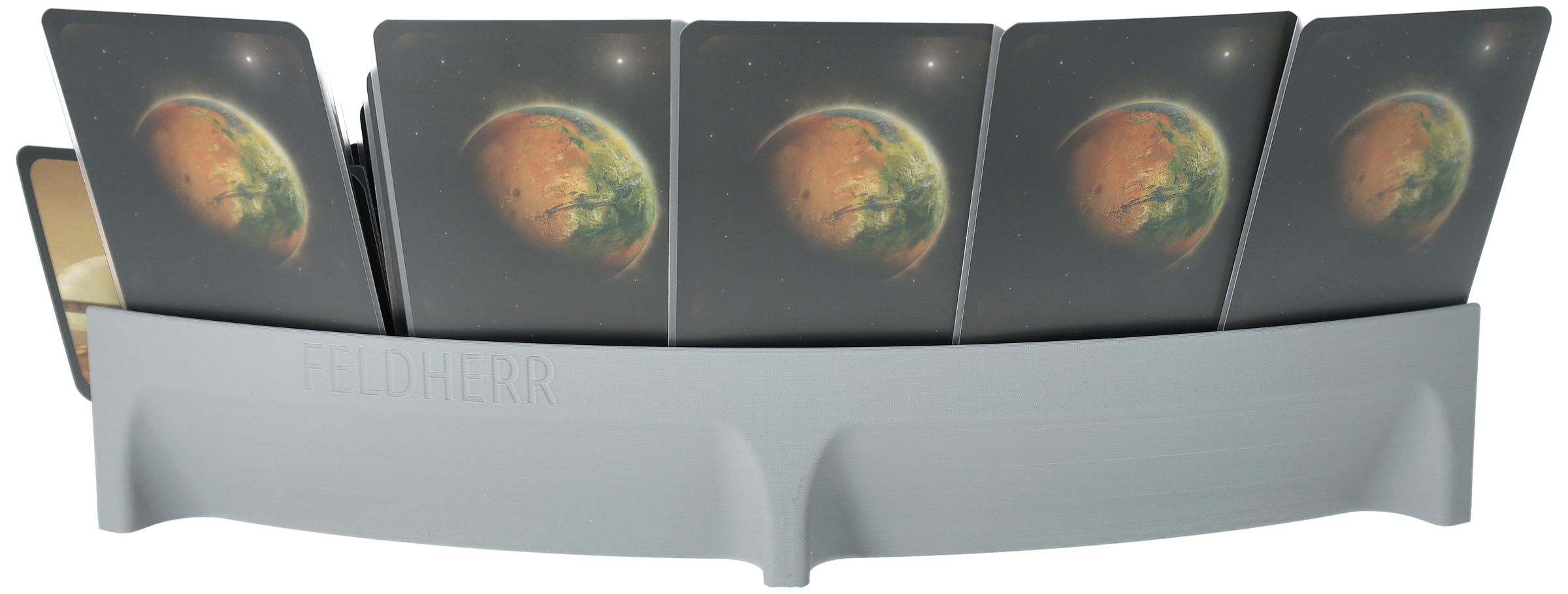 You want to realize all your projects in Terraforming Mars, but the stack of cards is growing and taking up more and more space? With the Feldherr card holder for Terraforming Mars, you can keep a clear overview of all your cards and create more space on the gaming table - for a strategic, focused gaming experience and efficient planning of your projects.