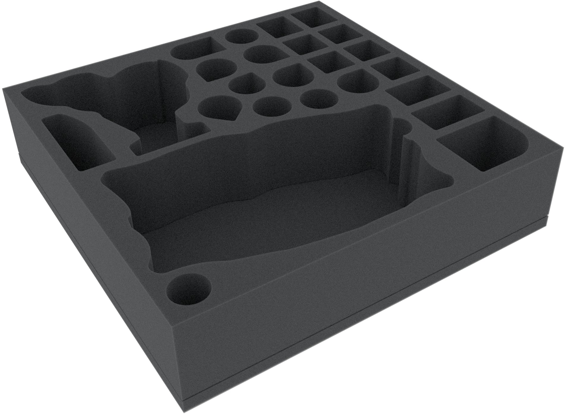 - The foam tray has the dimensions: 295 mm x 295 mm x 70 mm total height (60 mm usable height + 10 mm foam base)