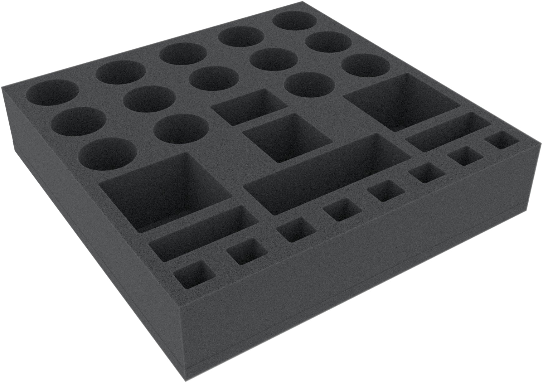 - The foam tray has the dimensions: 285 mm x 285 mm x 60 mm total height (50 mm usable height + 10 mm foam base)