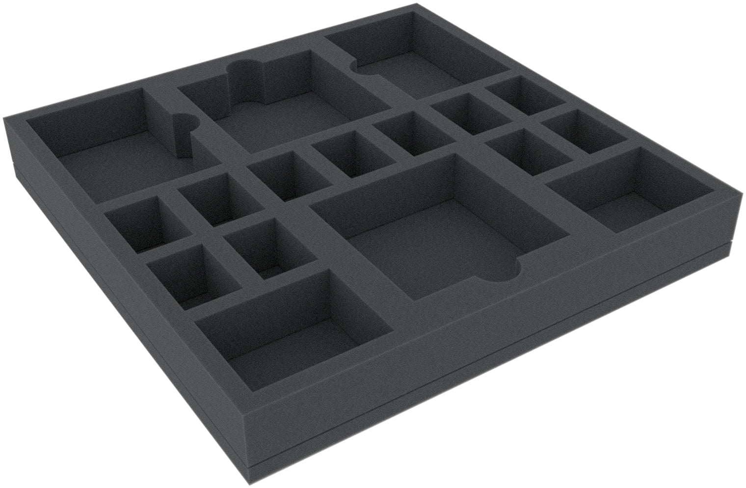 This 40 mm high foam tray is divided into 21 compartments. It is particularly suitable for the safe storage of tabletop and board game miniatures, as well as other fragile models and small parts.