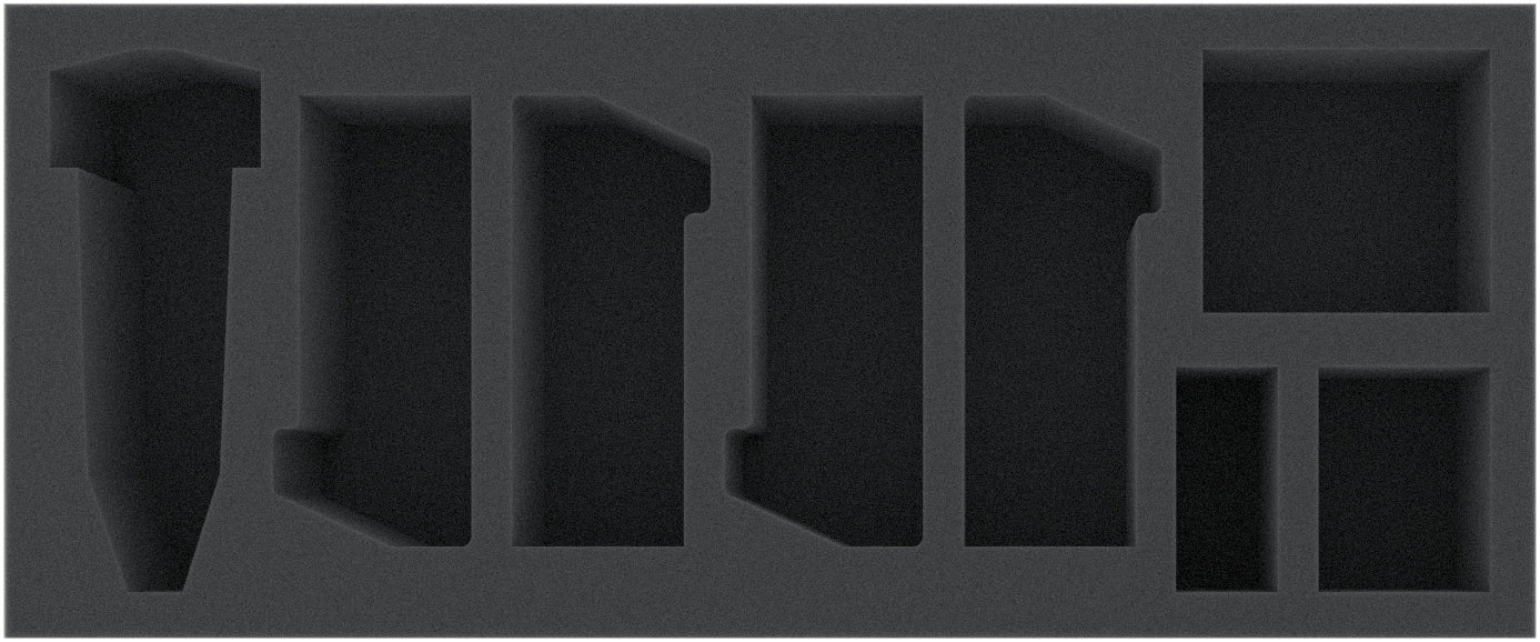 • The foam tray has the dimensions: 285 mm x 118 mm x 50 mm total height (40 mm usable height + 10 mm foam base).