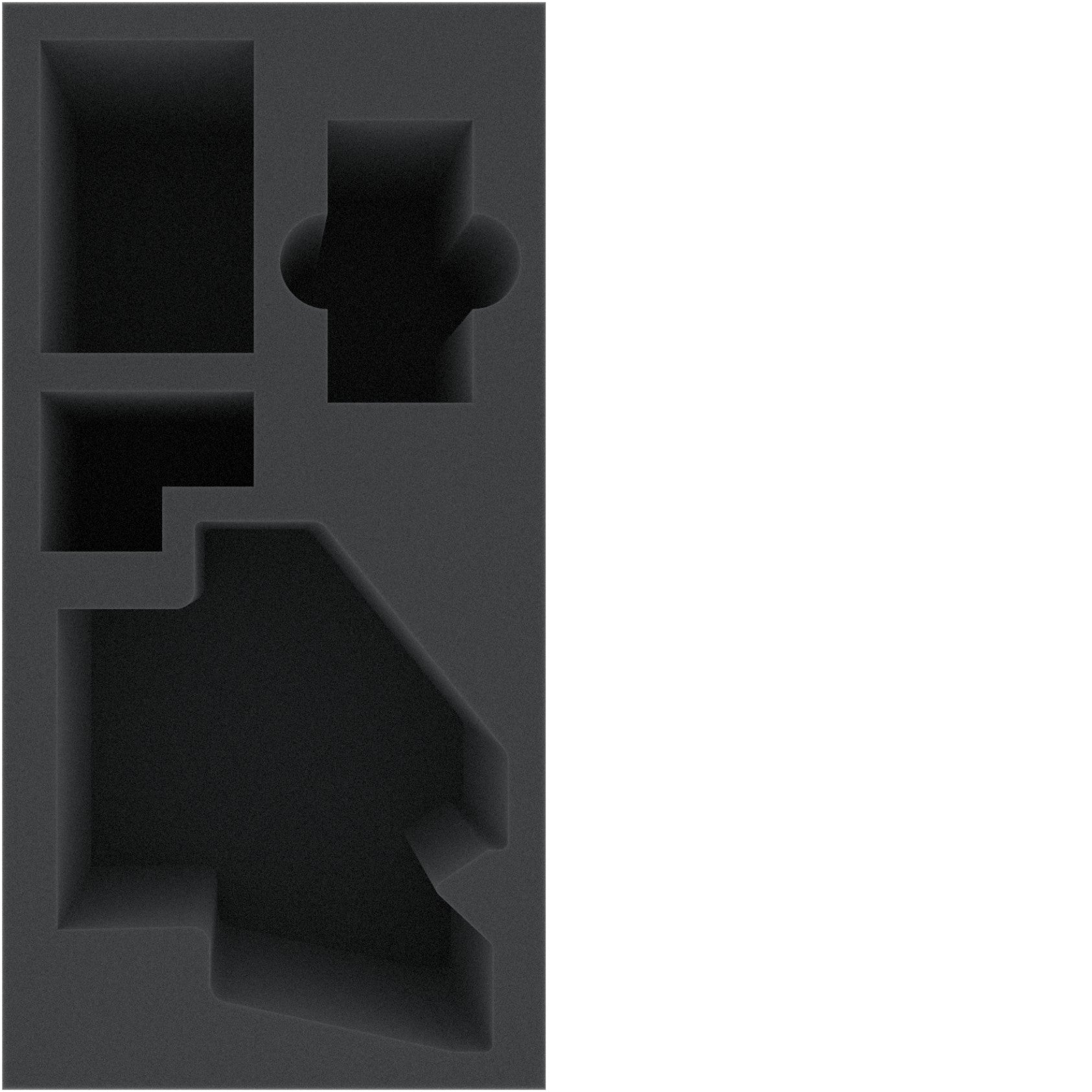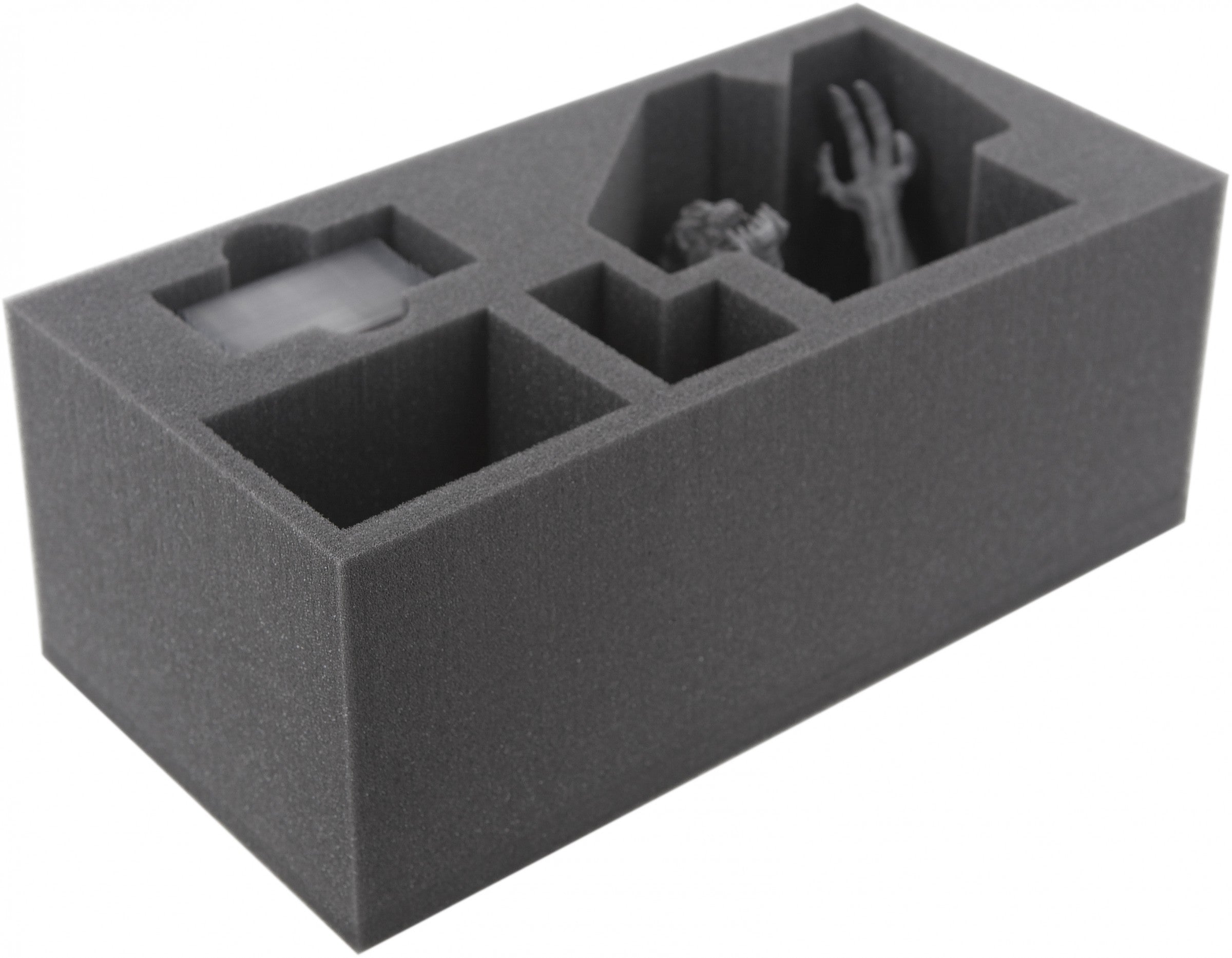 This foam tray suitable for retrofitting the game content from the Imperial Assault: Jabba's Realm board game box. The different sized compartments are suitable for the Rancor, Jabba the Hutt and in sleeves, in addition there is a free compartment for a bigger miniature like a Bantha Rider. The foam tray has the half size of the original board game box, two juxtaposed fit into the original board box and perfectly into the Feldherr storage box LBBG.