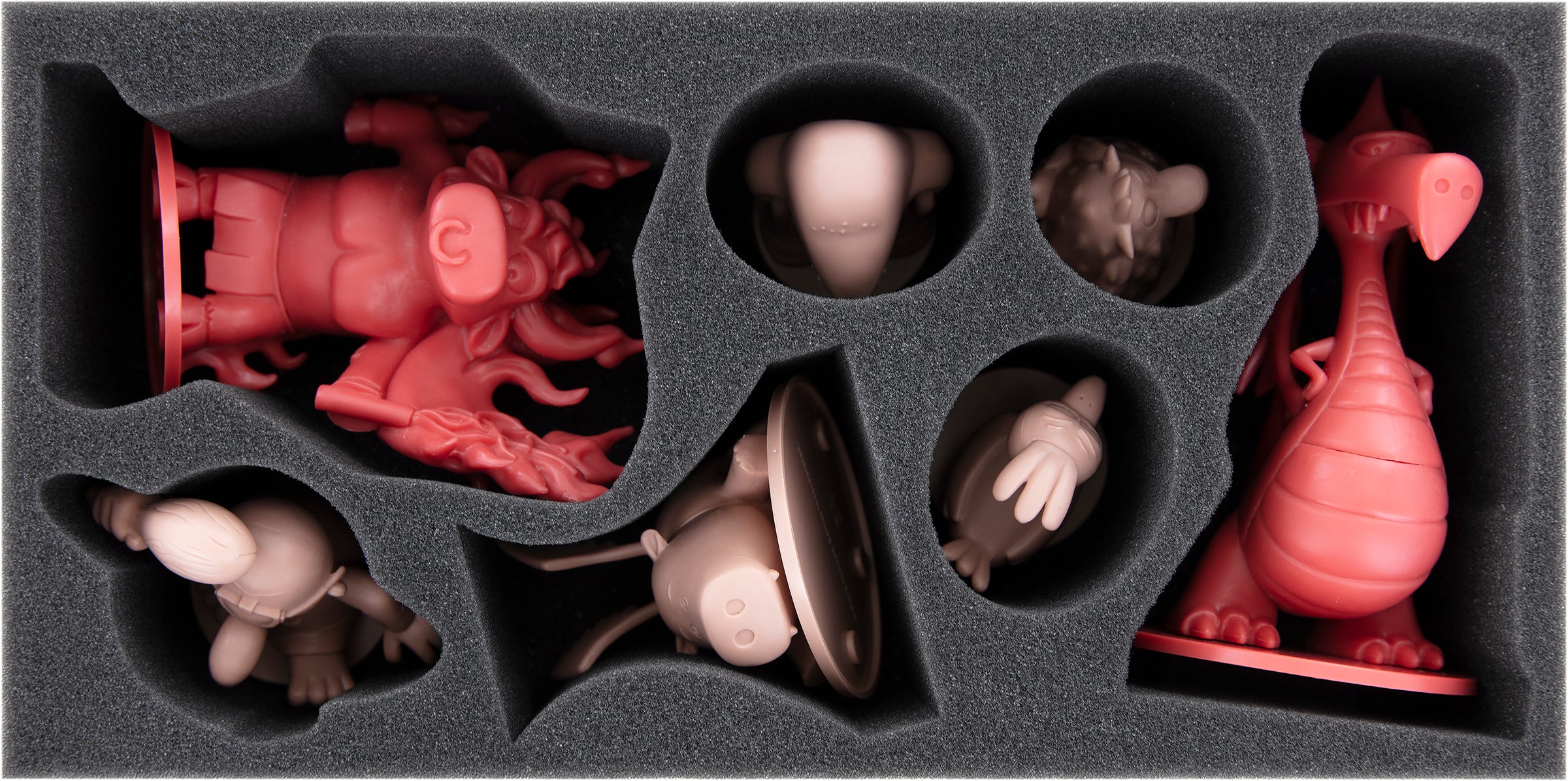 The nose can continue to drip undisturbed, the Hippogriff can land safely, and the dragon will keeps its wings. All figures are safely wrapped in foam all around. Perfectly fitting compartments ensure that the miniatures stay safely in place even on the road. This not only protects the fine parts from damage. The colors of painted figures are just as safe from abrasion and scratches.