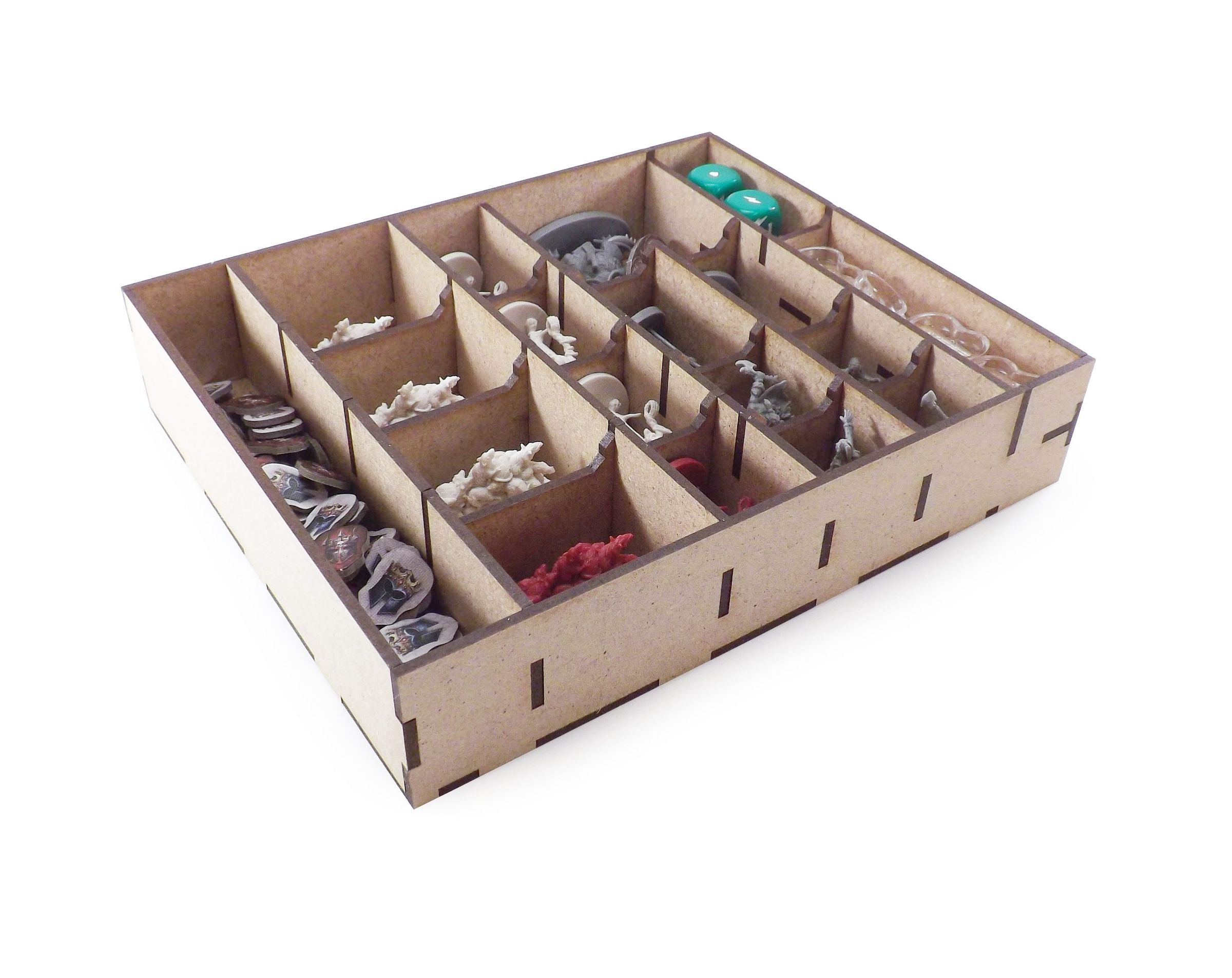 To bring the epic struggle between brave heroes and evil overlord to the table, the game comes with a wealth of map tiles, monsters, dice, doors, tokens and cards. Our insert sorts and groups all these components for an orderly descent into the next dungeon.