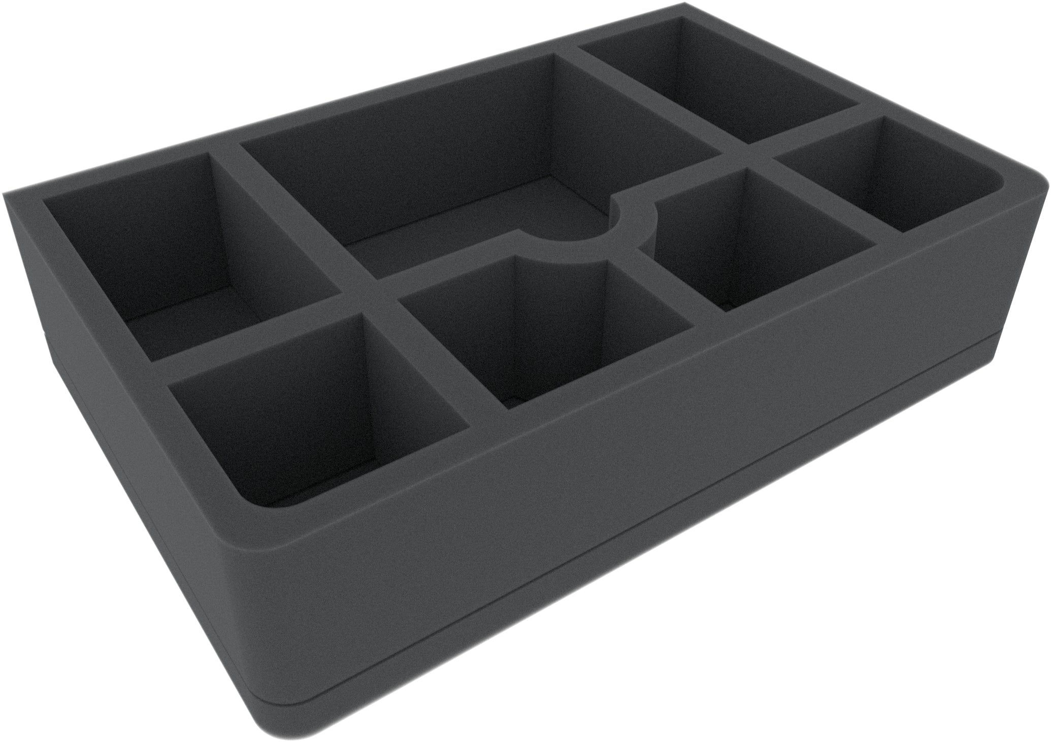 This Feldherr GWA-Size foam tray has 7 compartments of different sizes. The insert is particularly suitable for storing game material such as tokens and tiles or other small parts.