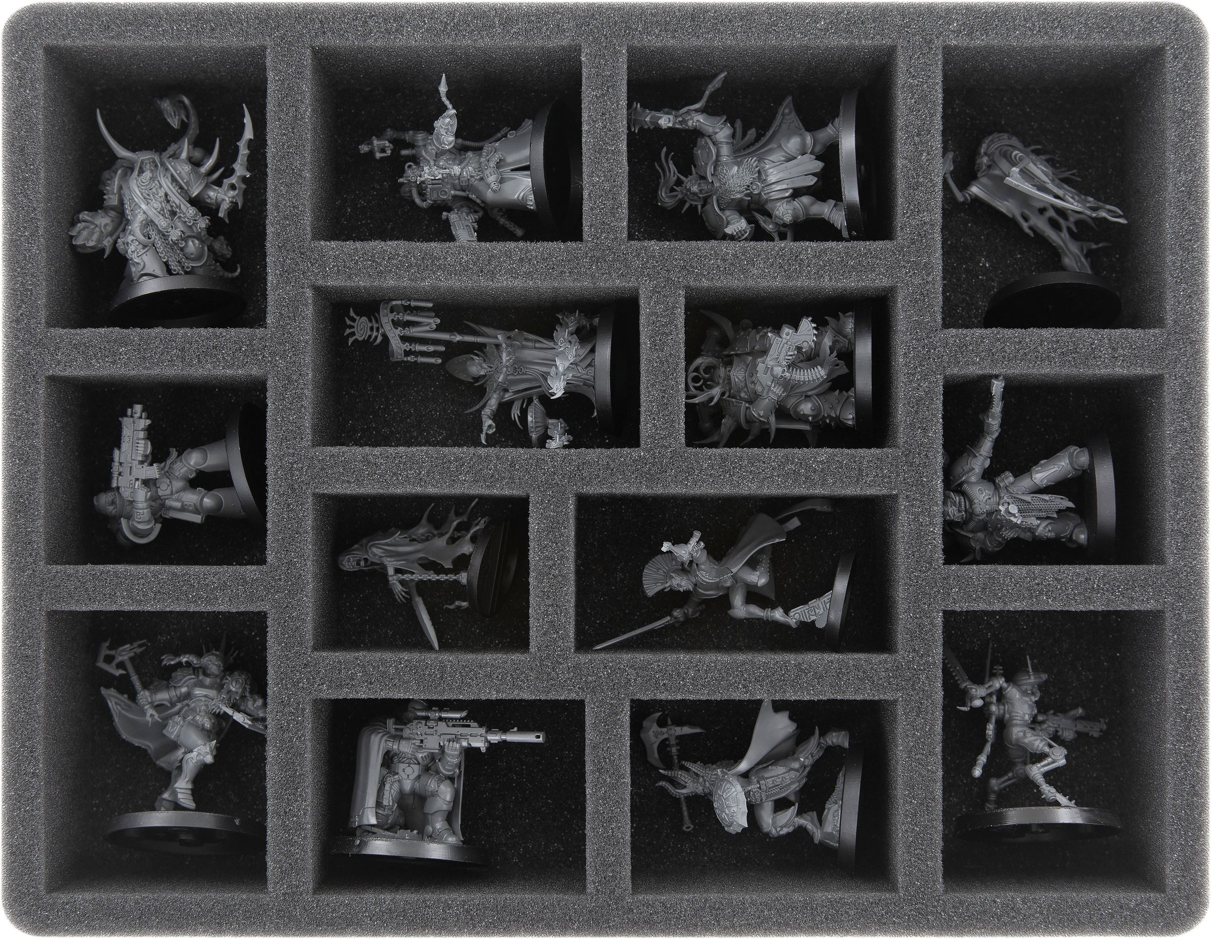 Feldherr foam trays in GWA-Size and GWB-Size are compatible with various GW transport cases with internal dimensions of 272 mm x 211 mm. These include, for example, the Citadel Crusade Figure Case, Citadel Battle Figure Case, Citadel Skirmish Case, as well as the Warhammer 40,000 Carry Case.