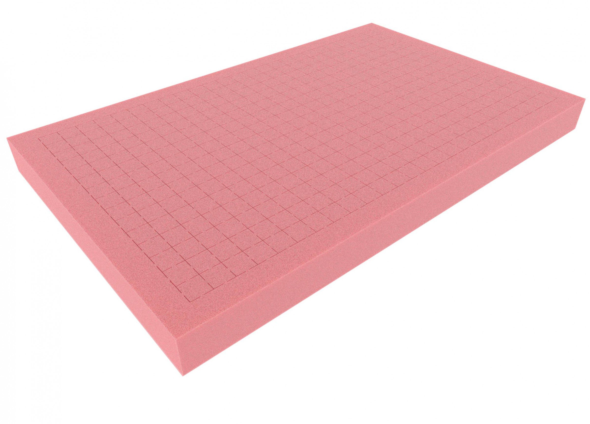This foam is perforated with a raster of 20 mm x 20 mm (25 x 15 = 375 cuboids). A circumferential border is not perforated and increases the stability of the fitted foam insert. The grid allows the tool-free adjustment of the foam inserts to your needs. The article will be delivered without bottom foam sheet. As a bottom we offer for example the articles DS010BESD or DS020BESD.