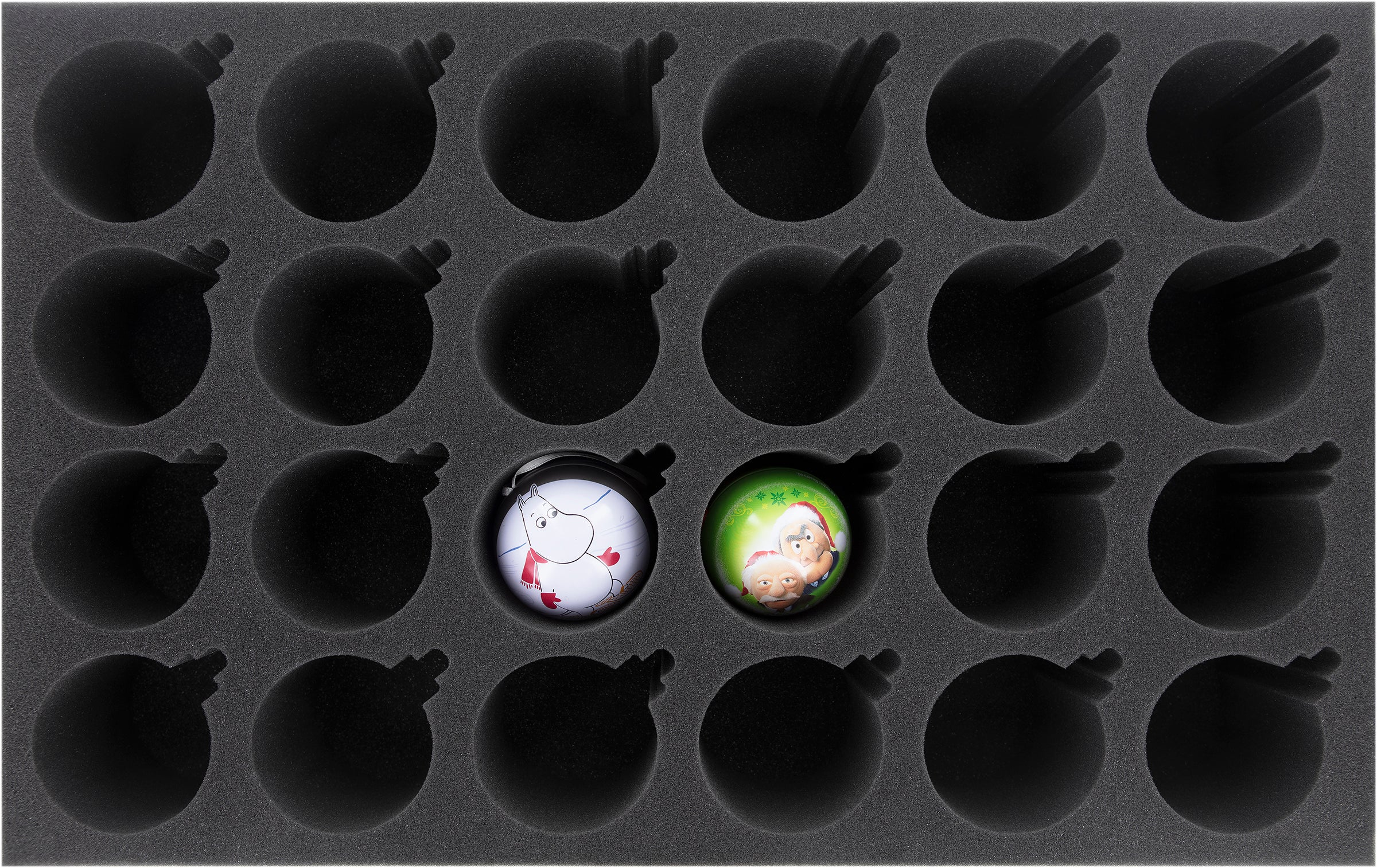 Same bauble trouble as every year? By using the Feldherr foam trays, the sensitive decorative balls survive storage and transport without damage. 24 baubles with a diameter of 70 mm each get their individual places in the soft foam. Even drops from a great height, they will survive without any problems. Caution is therefore only still necessary when hanging and removing them.