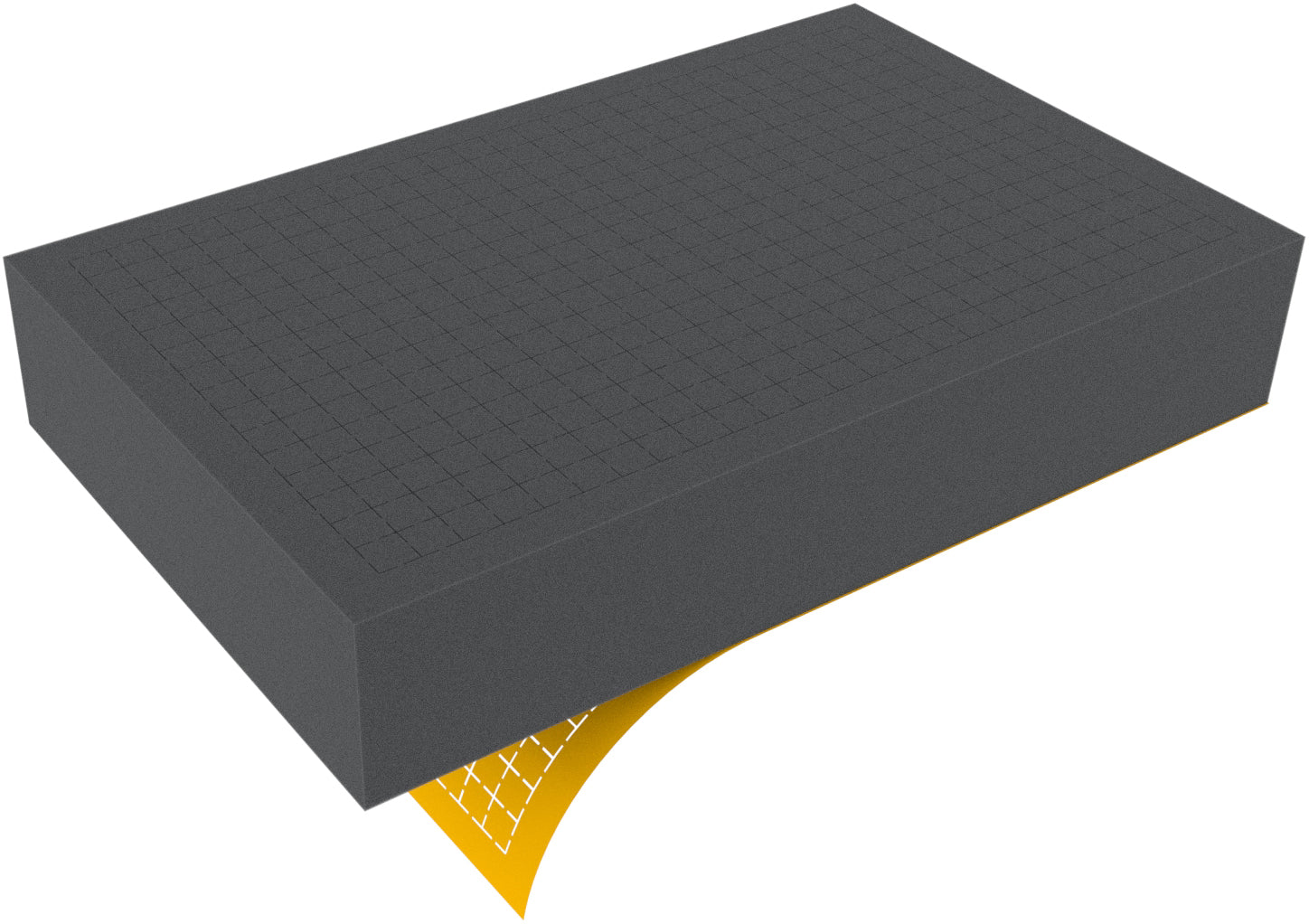 The Pre-cubed foam is completely die-cut over the entire height. The foam base is available separately. To ensure the optimal protection of the packaged goods from below, we recommend using a 10 mm strong foam base like article DS010B.