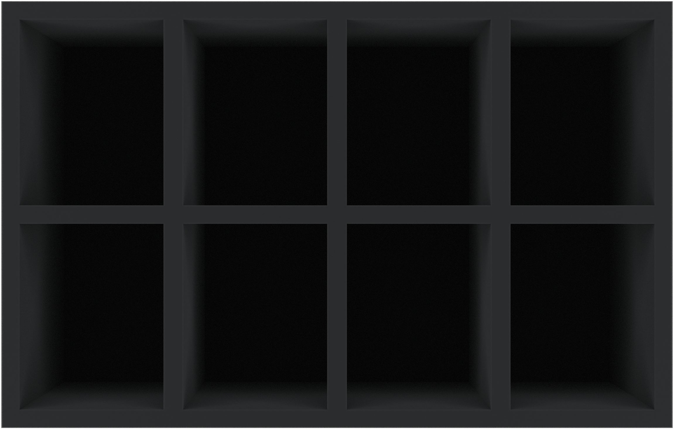 When transporting material, the robust PE rigid foam insulates the load against the hard transport boxes, as well as the load against each other. Because the entire foam part is only placed loosely in the container, it is ready for immediate use. If necessary, it can be removed just as quickly or exchanged for another variant.