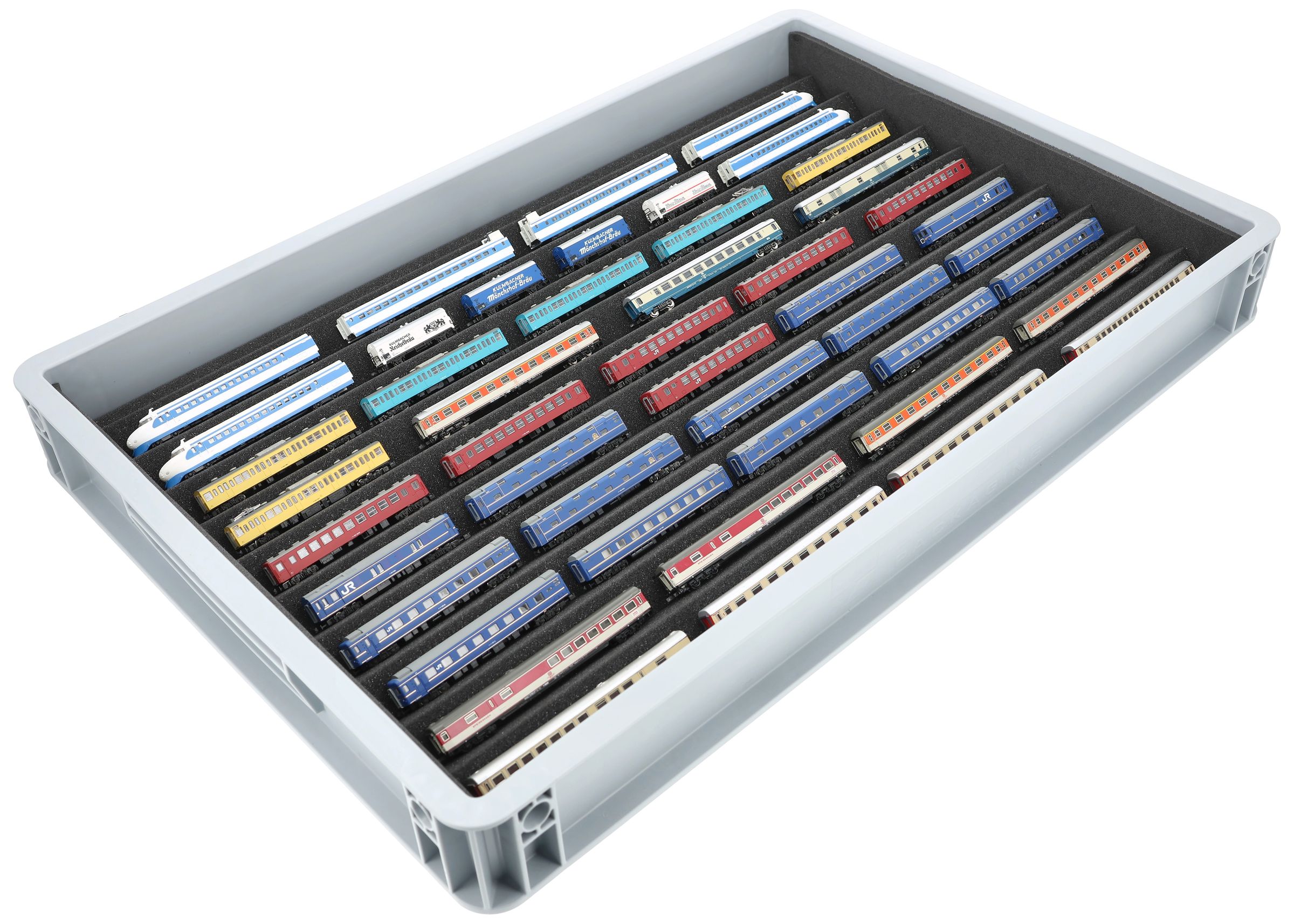 Ten compartments, tailor-made for model railways in gauge Z, offer your locomotives and wagons reliable protection for storage and transport.