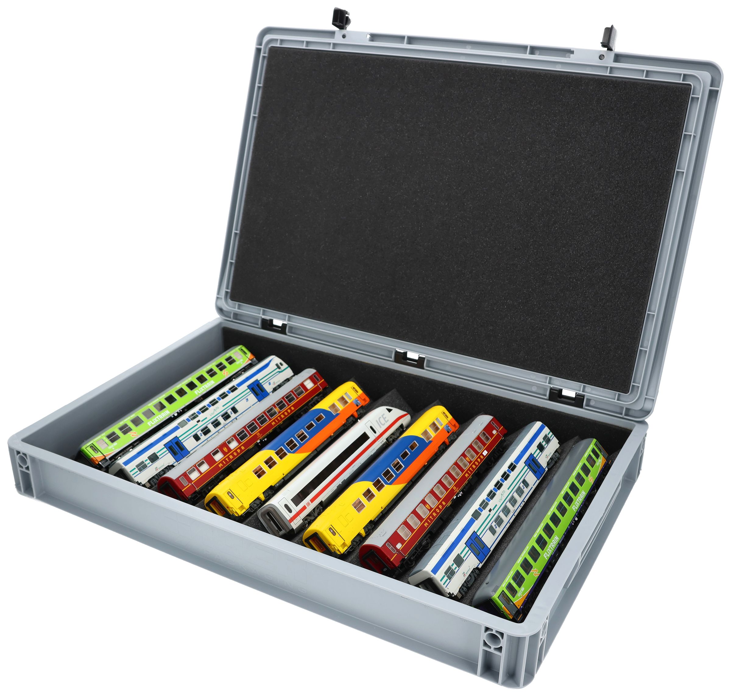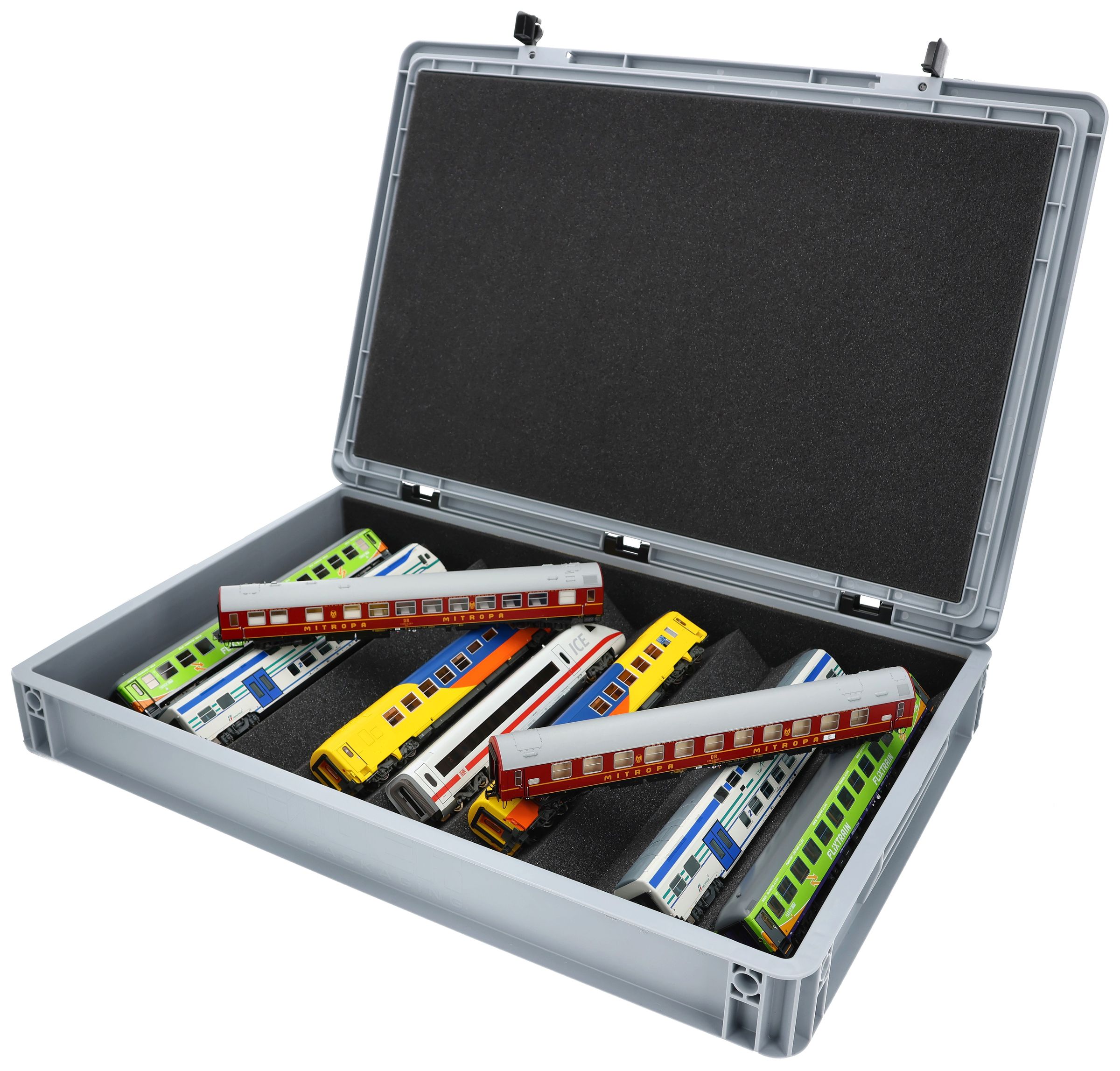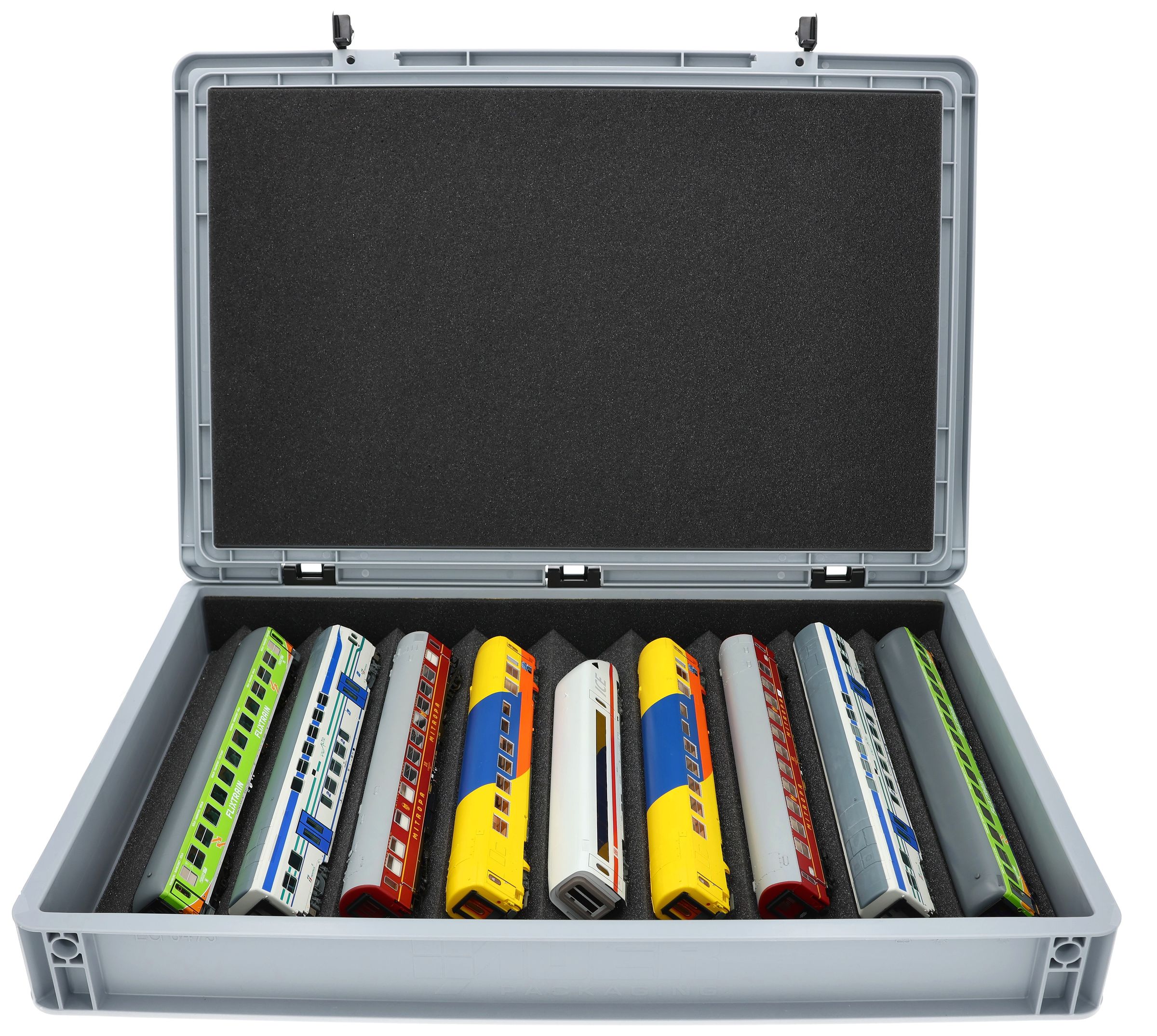 Stored properly, presented clearly and transported safely - The all-round foam inlay for model railways in H0 gauge in the solid Eurobox.