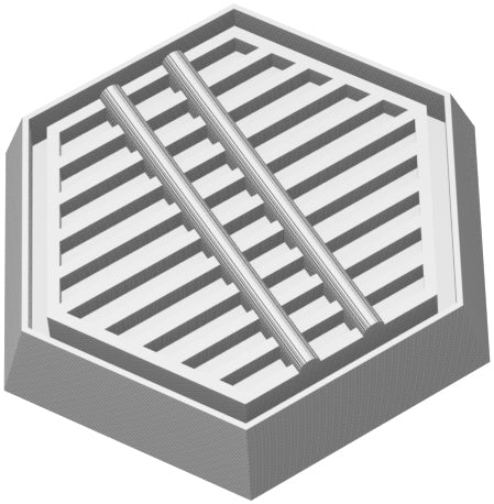 The 3 bases have been individually designed with an industrial site in mind. With grids, pipes, and additional technical details on the edges, they are ideal for thematic battlefields in factories or in the distant future. Ideal for game systems that require hexagonal bases like Battletech.