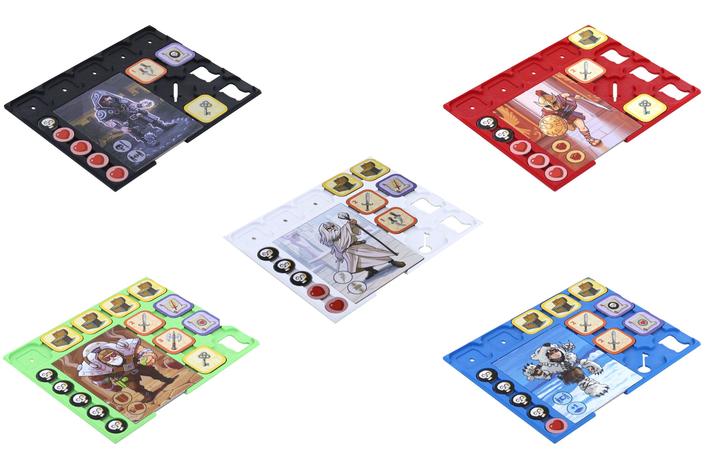 With this Full Player Set, each player receives their own Hero Dashboard for Karak. So you can always keep track of your characters, and nobody is confused by the flood of tokens. Made of durable plastic, they replace the included cardboard Dashboards and help you master your avatar and concentrate on what's important: the fight for the valuable treasures.