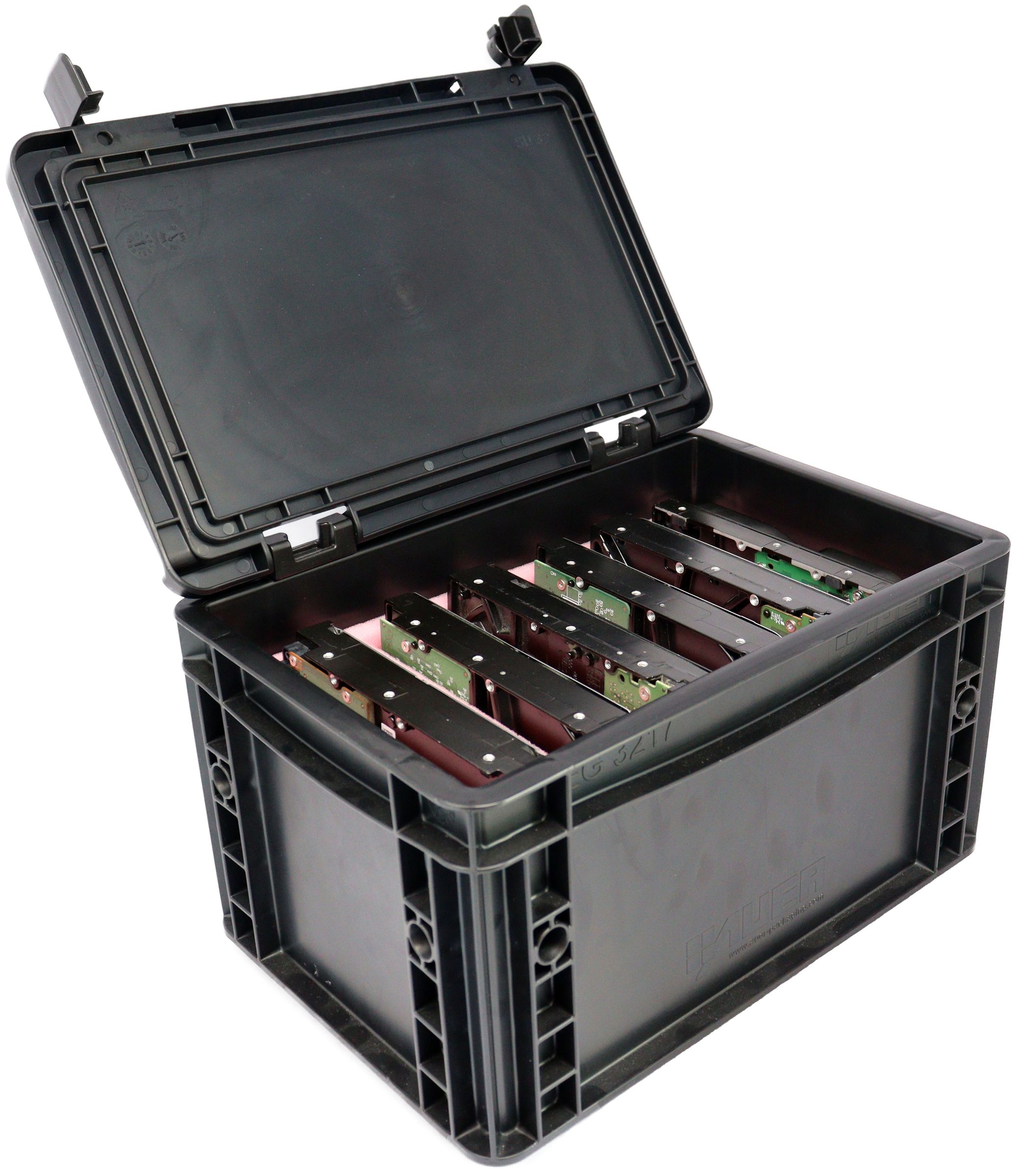 This professional ESD foam Eurobox provides proven protection against electrostatic discharge for up to 6 internal 3.5-inch hard drives. Data corruption from ESD is reliably prevented - our antistatic material system protects exposed electronics from dangerous static discharges during transport and storage.