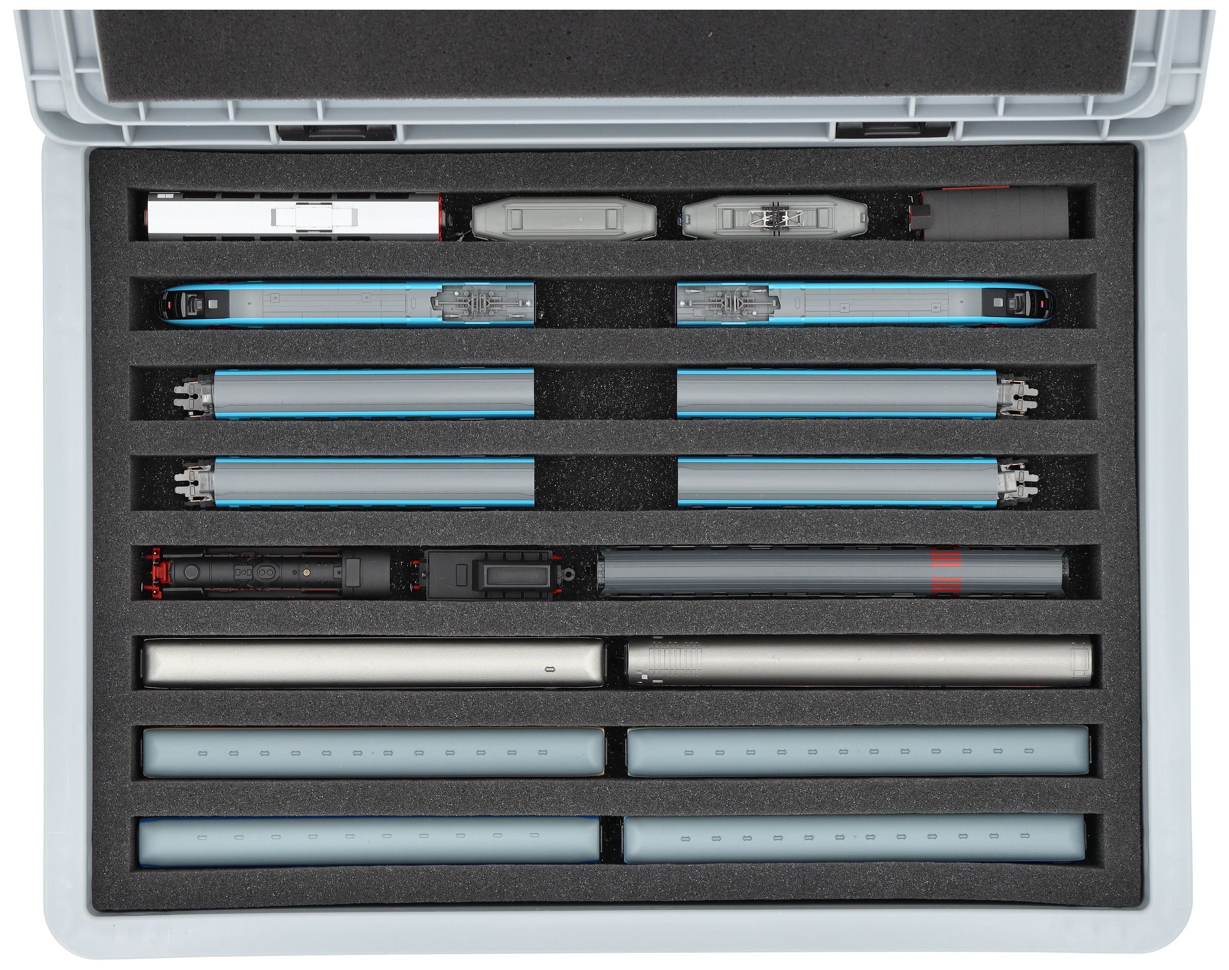 - 8 compartments - foam insert for upright storage of locomotives, wagons and vehicles