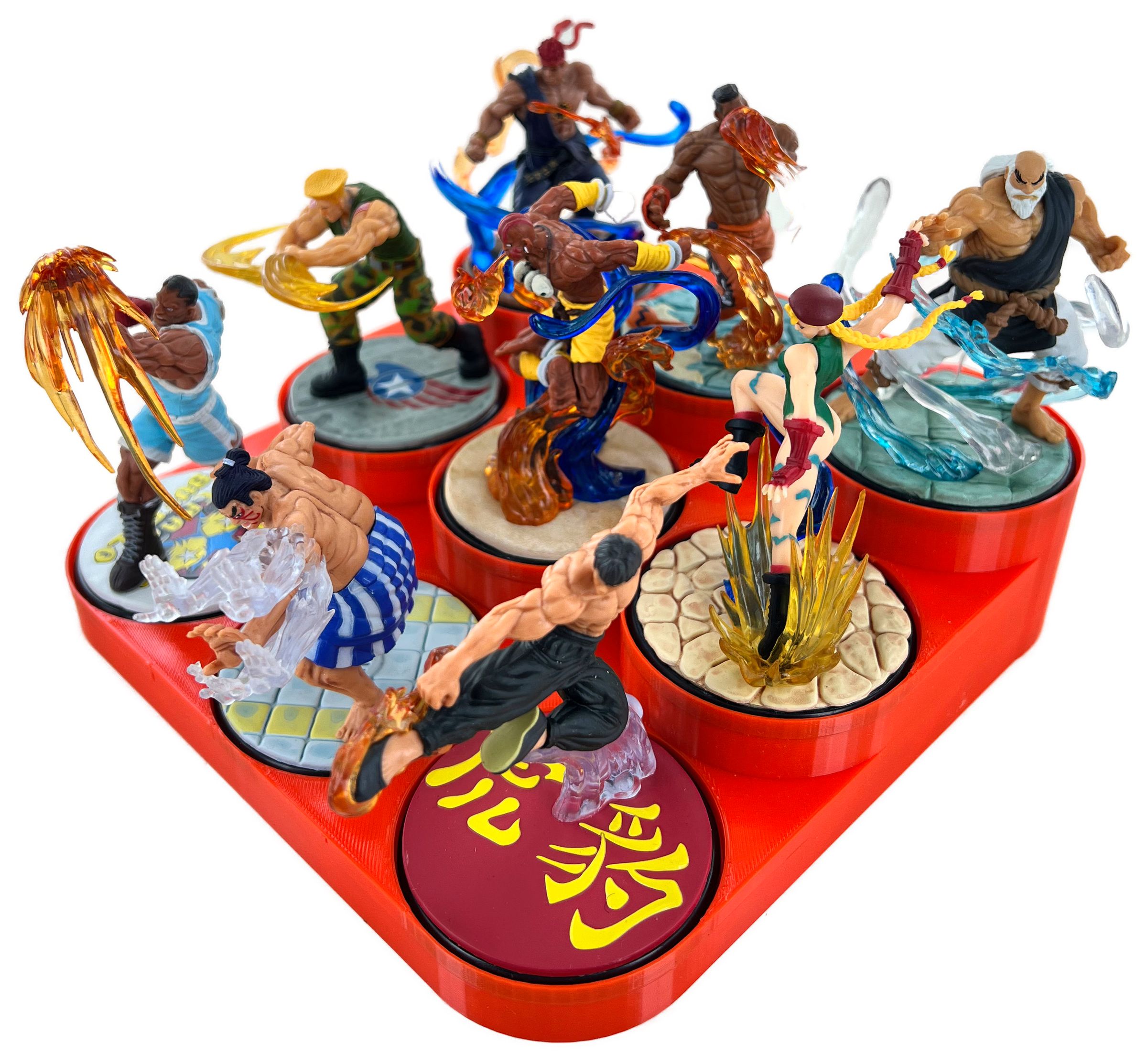 The convenient figure holder made of sturdy plastic skillfully showcases your models on up to 58 mm bases, like miniatures from Street Fighter: The Miniatures Game and 62159 Infinity.