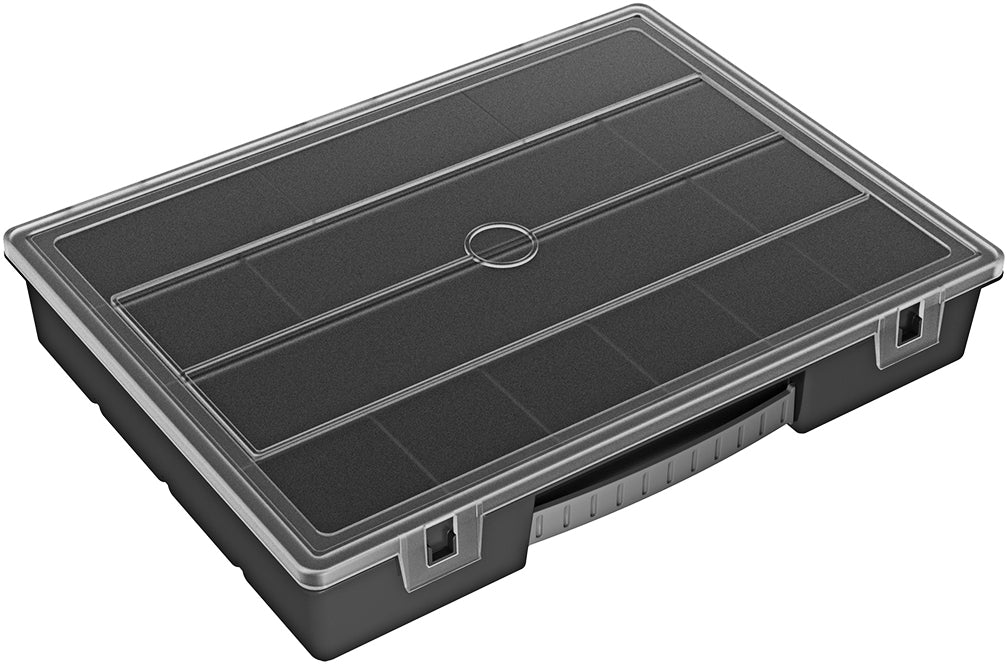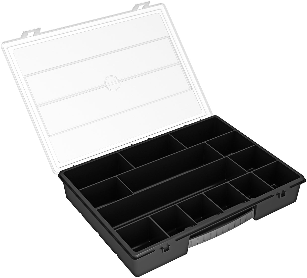 La caja ofrece 14 compartimentos fijos para guardar los materiales de juego. También es ideal para guardar materiales de hobby como herramientas y pinceles, pinturas, cosas verdes y pegamento.
