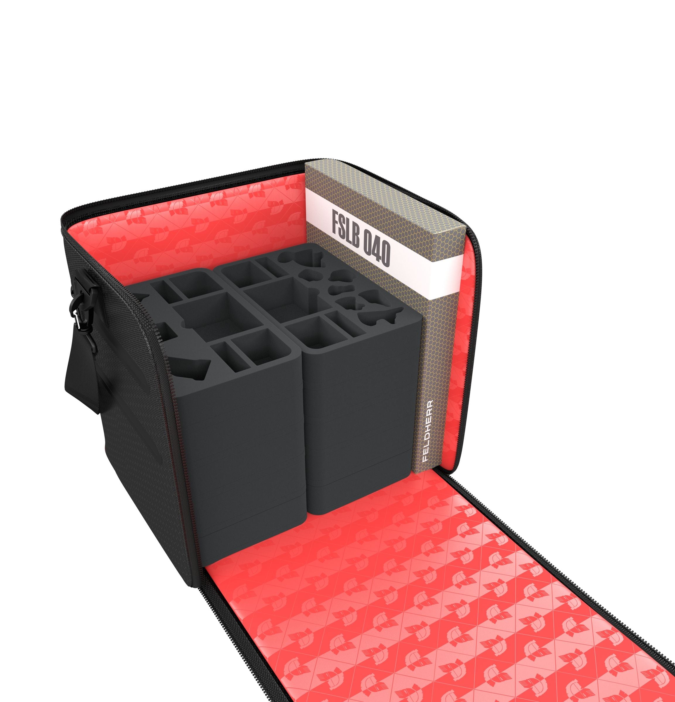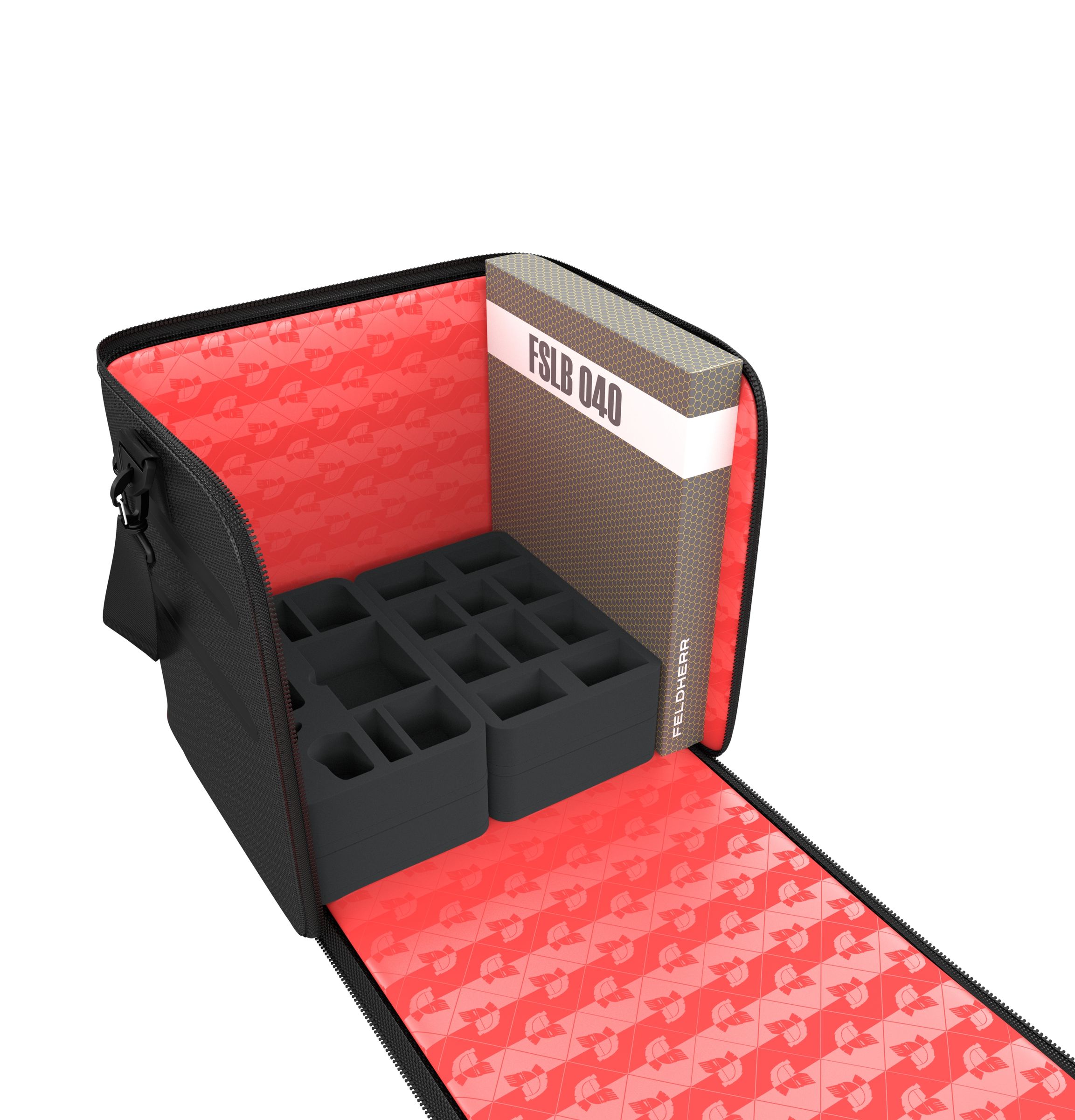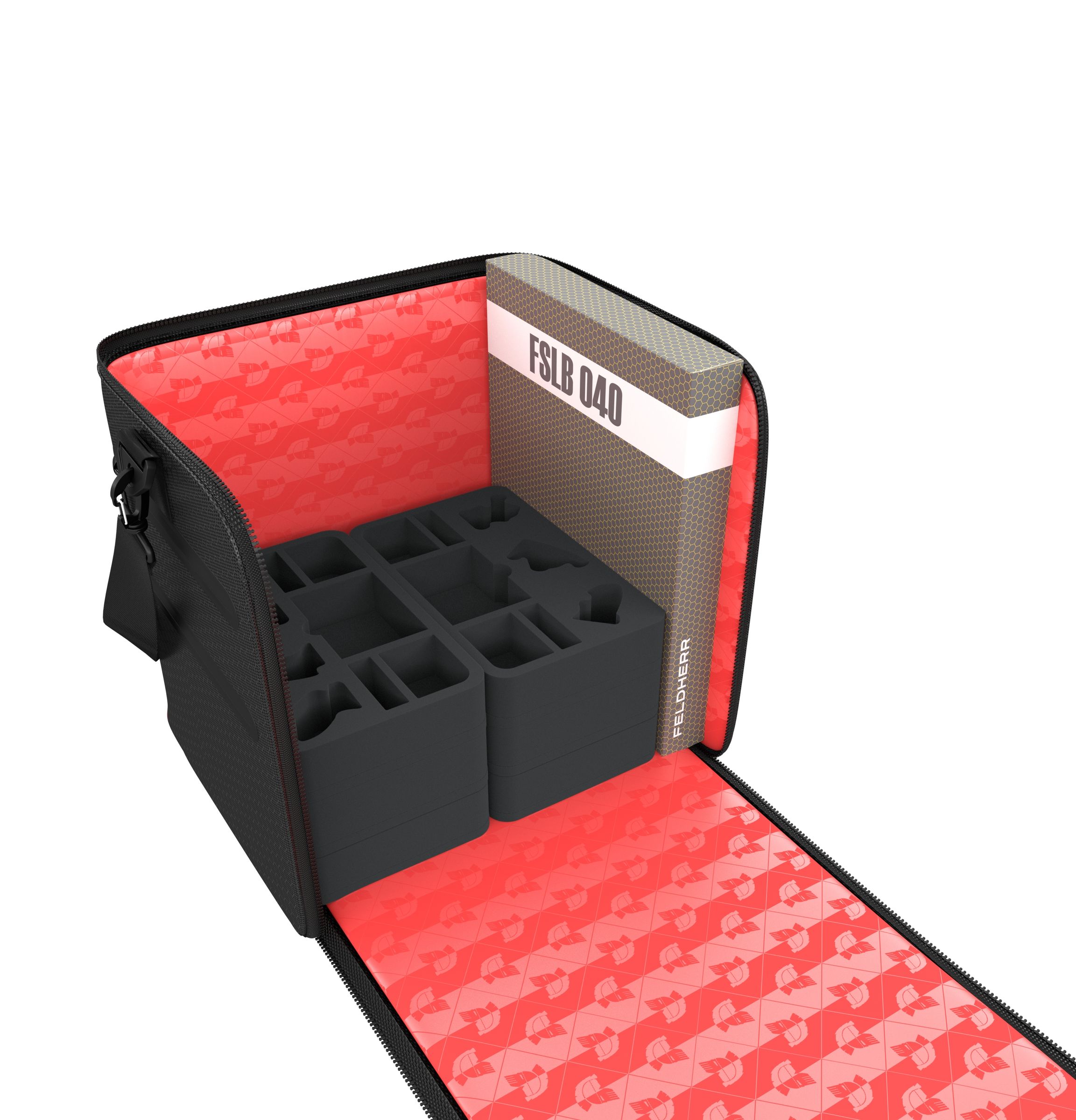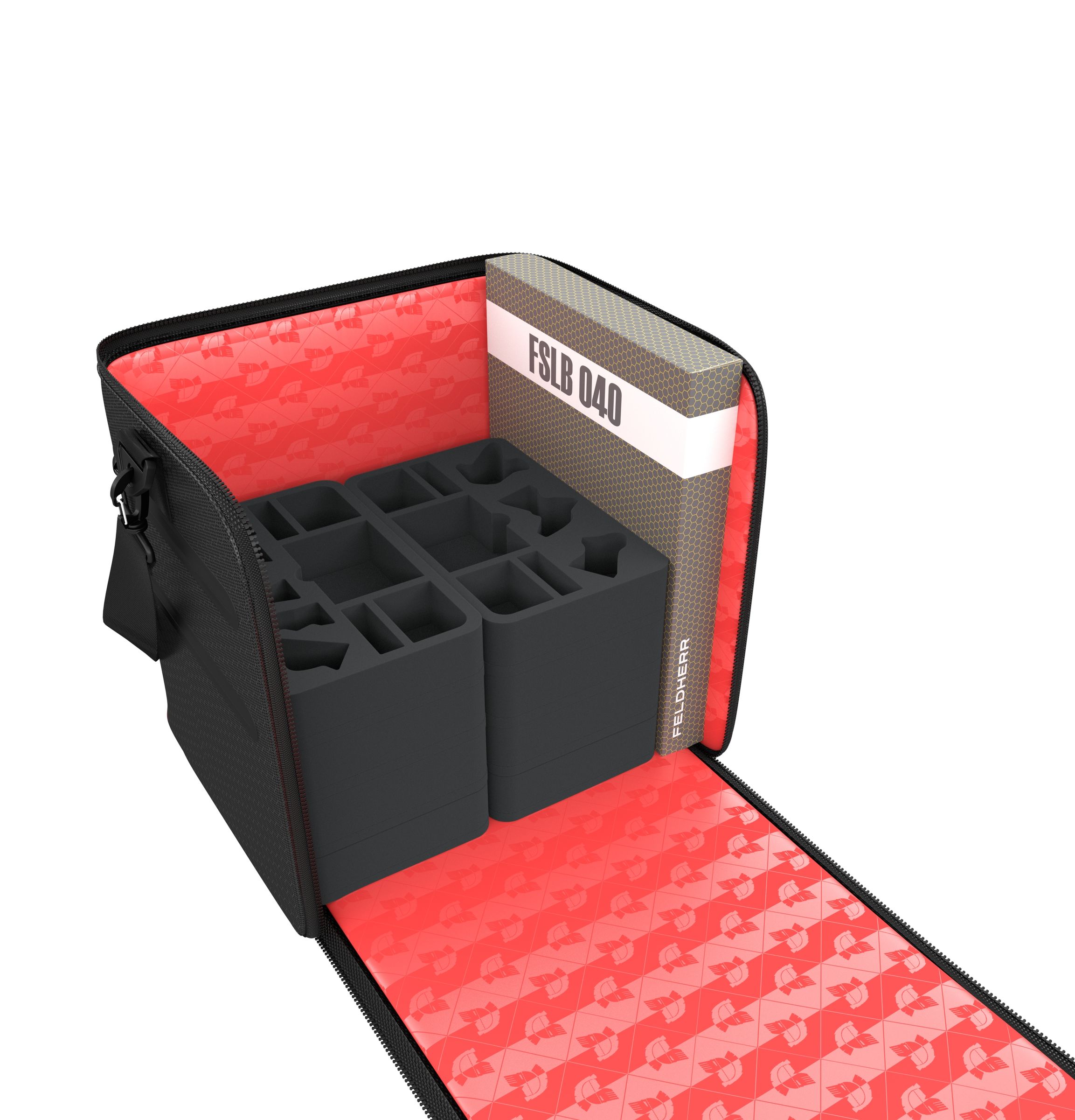 To make sure that your game boards have a fixed place, we've added a Storage Box FSLB40 and 2 foam toppers. The box is placed sideways next to the foam inserts. Here it doesn't only take care of the storage of your boards. It also ensures a tighter, more secure fit of the foam inserts and thus more stability for transport.