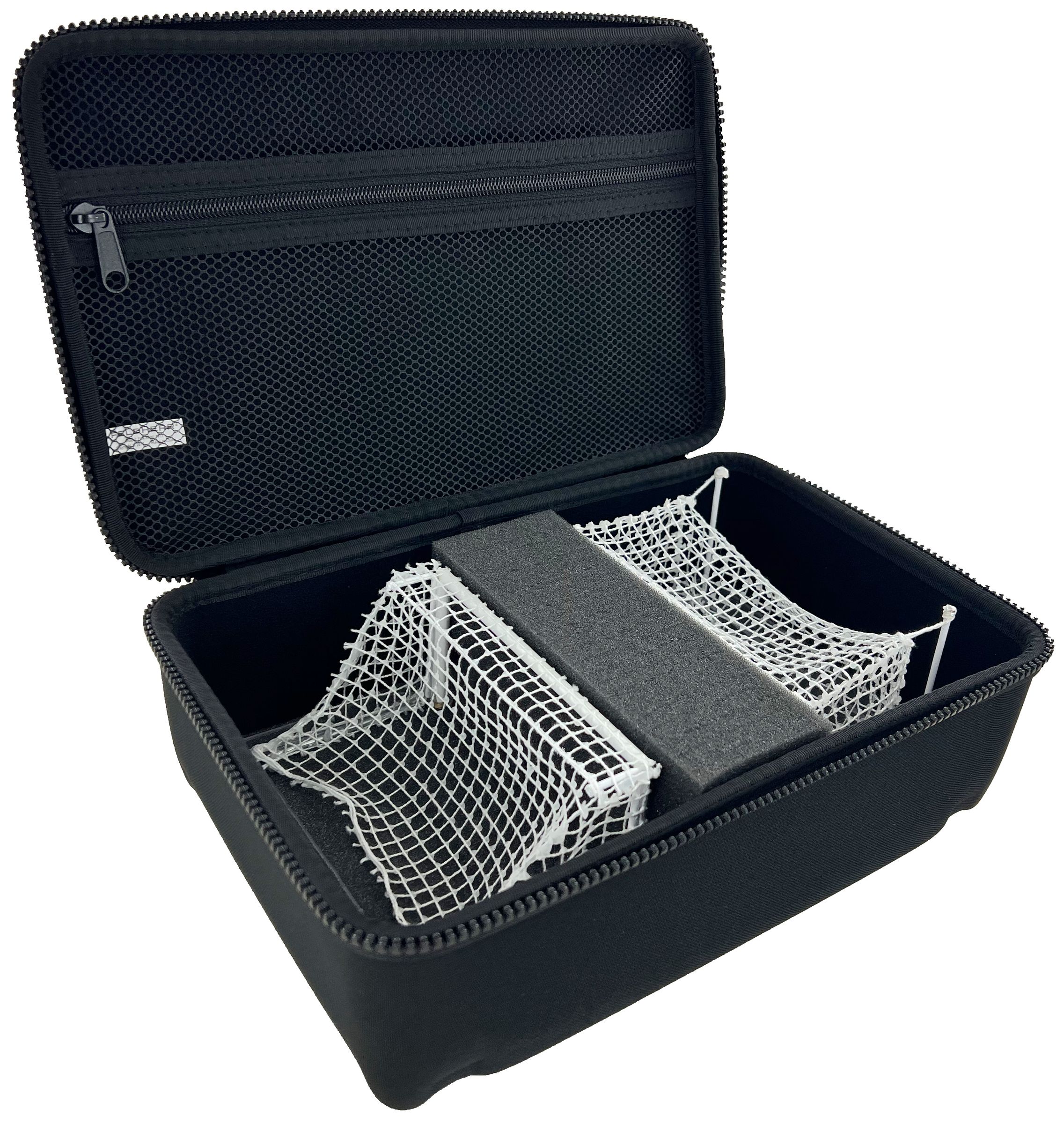 • Goals from the core game, as well as higher quality goals with a maximum width of 172 mm and maximum height of 70 mm, fit into the case.
